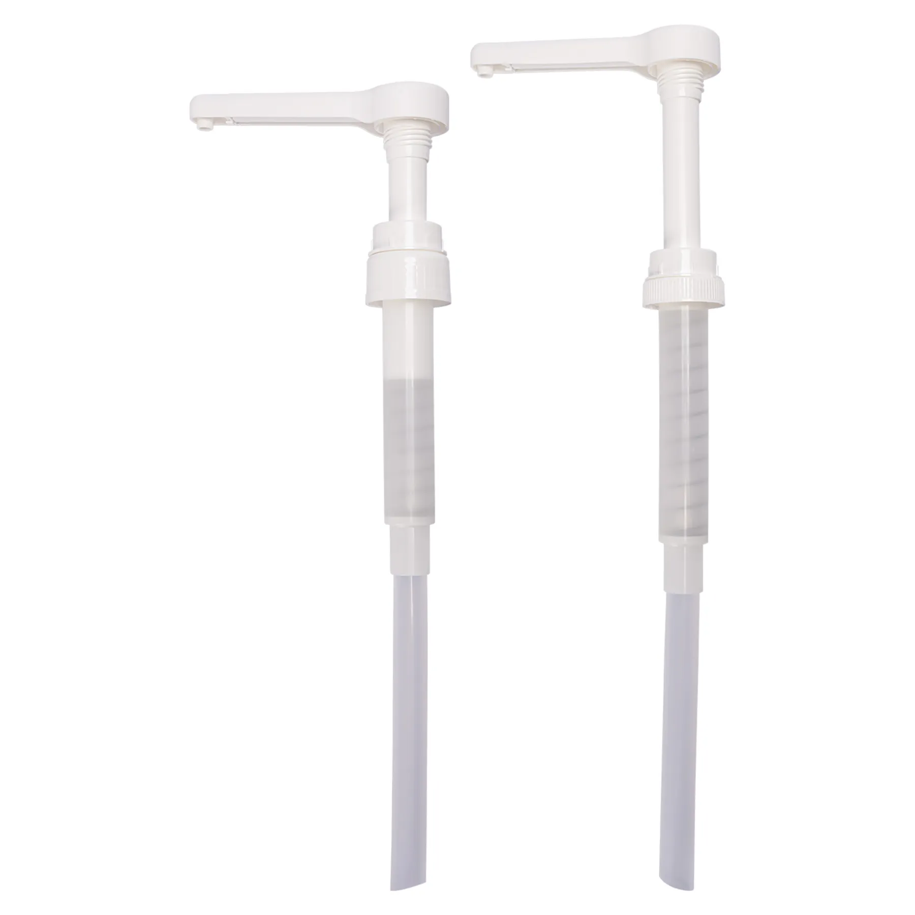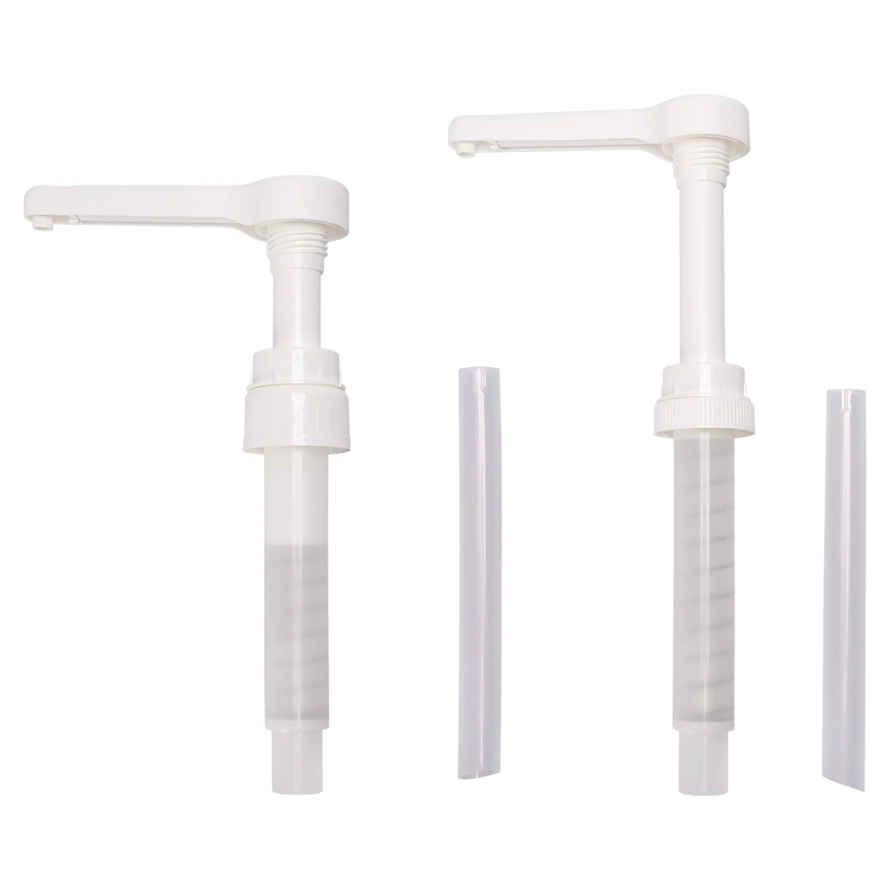 - 15 ml: The total length is 14", with an additional tube connected. The dispense tube with pump is 8 1/2" long and comes with a 6" extension tube for gallon jug use.