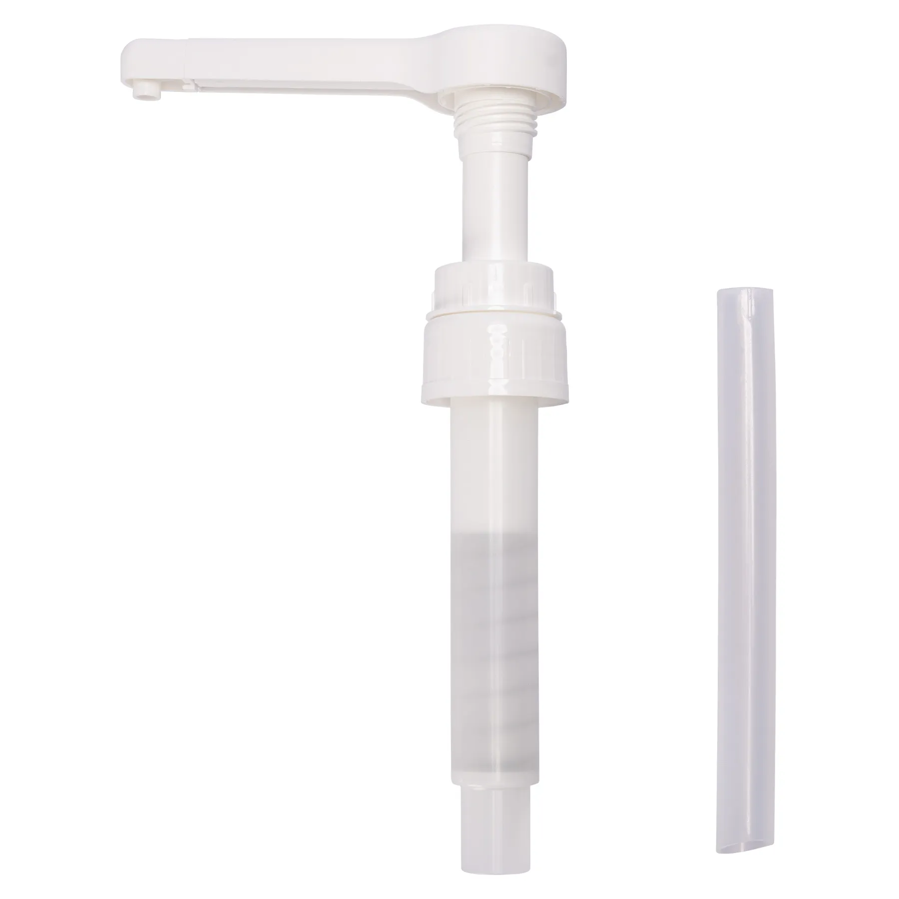 - 30 ml: The total length is 17", with an additional tube connected. The dispense tube with pump is 11" and comes with a 6" extension tube for gallon jug use.