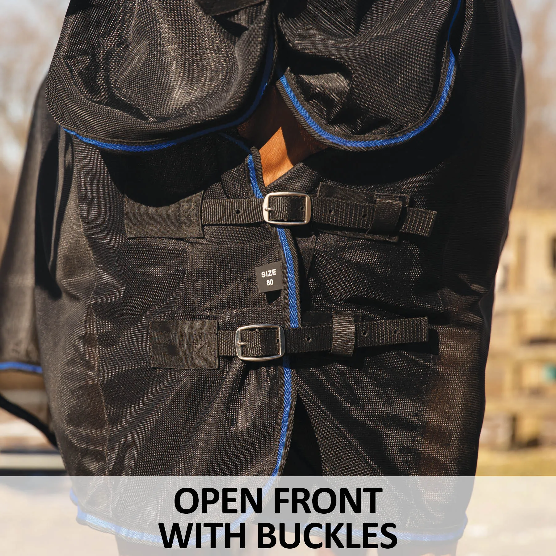 This air mesh sheet with an attached neck can be used as an ideal lightweight summer stable sheet with the benefits of ceramic sheets for horses. Ceramic therapy is a cost-effective and powerful rehab, recovery, and preventative maintenance solution. This sheet increases circulation and speeds up pre-performance warm-up to help keep your horse loose and limber while aiding in post-workout recovery or rehabilitation from injuries, soreness, and overall inflammation or arthritis pain.