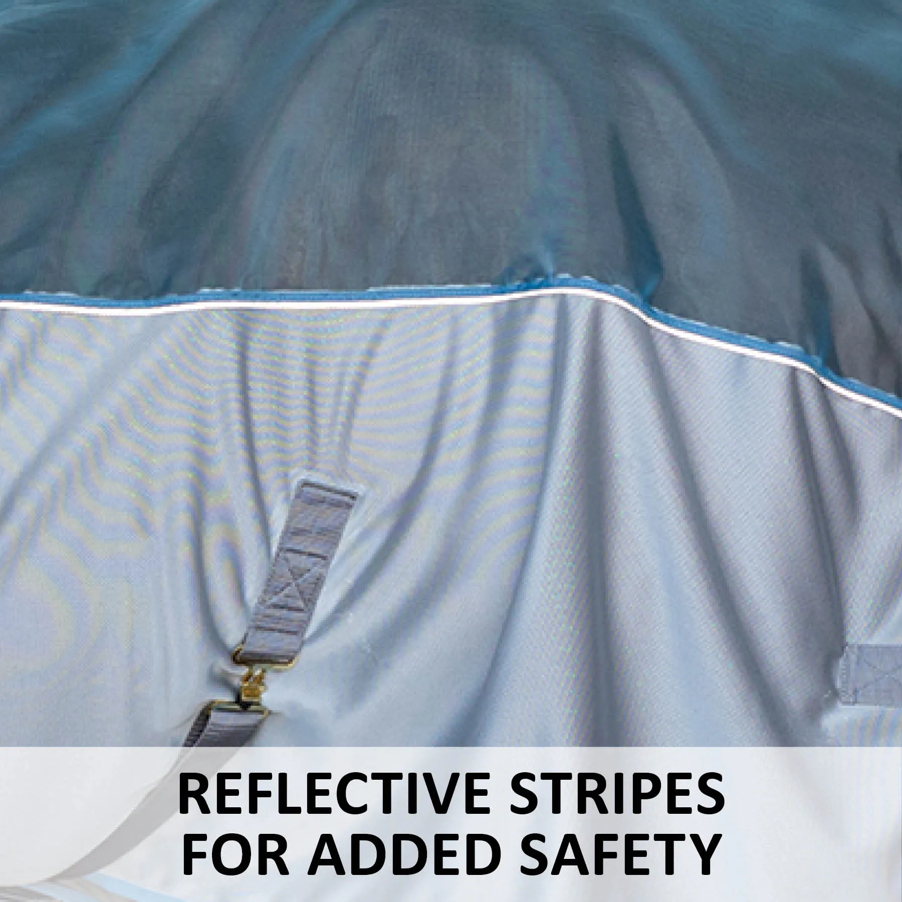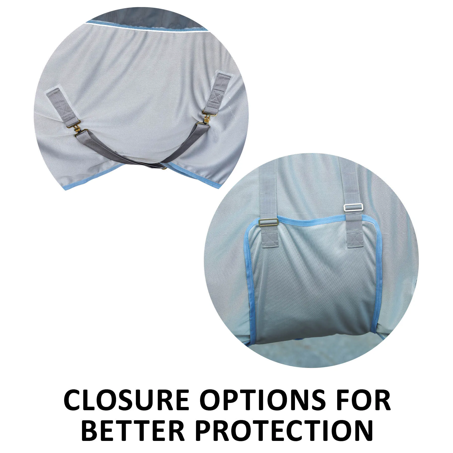 Your horse will get the best dual insect and UV protection with these hybrid fly sheets. It's designed with an extra fine Mosquito Mesh® on the chest and back and a Soft Interlock Mesh® on the sides, offering insect protection from small to medium-sized bugs, such as mosquitos, gnats, and flies. Plus, it features reflective stripes for safety and SilverTek® technology with antibacterial nylon lining on the chest, shoulders, and tail flap. It comes in comfortable VTEK®, Attached Neck VTEK®, and V-Free® Wither Relief fit options to relieve pressure on all types of withers. The extra large tail cover protects the sensitive area under the tail from flies and biting insects. Other comfort fit features include a surcingle or bellyband closure, our original Adjusta-Fit® customizable neck opening, and a gusset designed for a better range of motion.