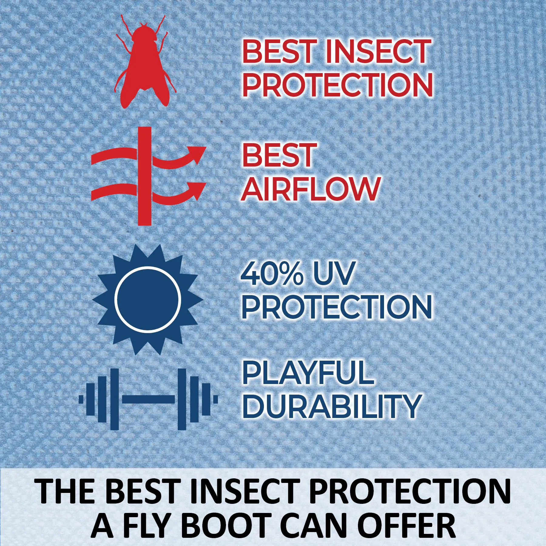 - Non-fitted fly boots that offer the best insect protection