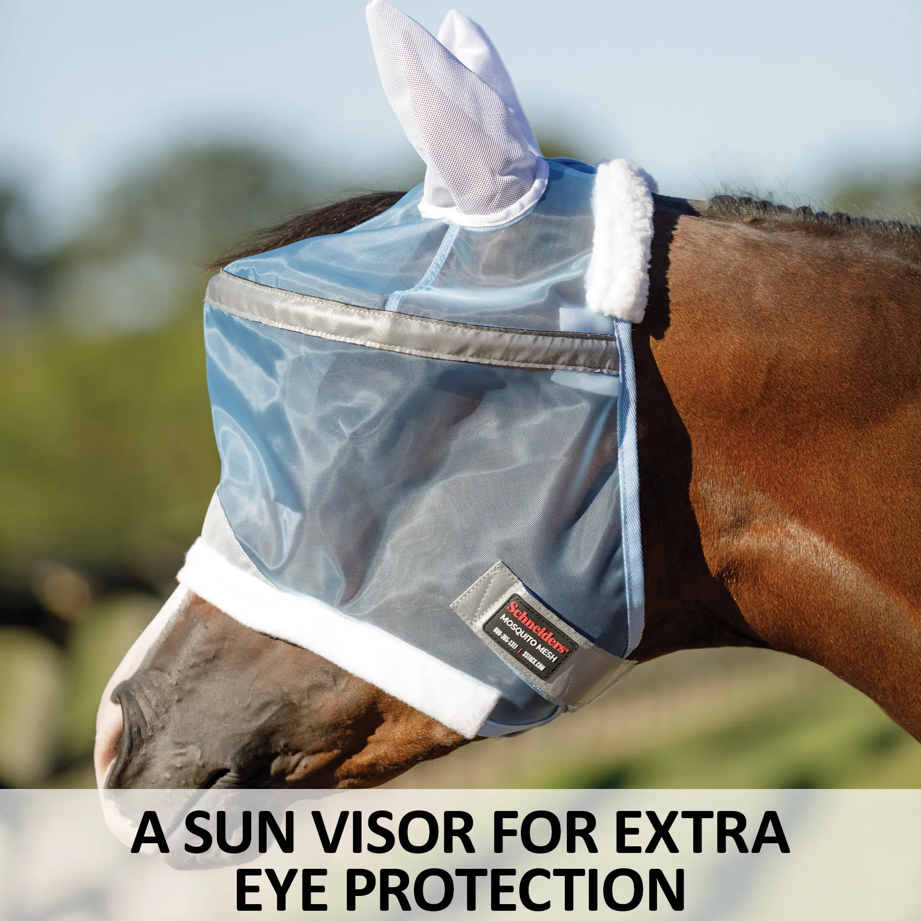 - A sun visor fly mask with soft mesh ears that provides the best insect protections