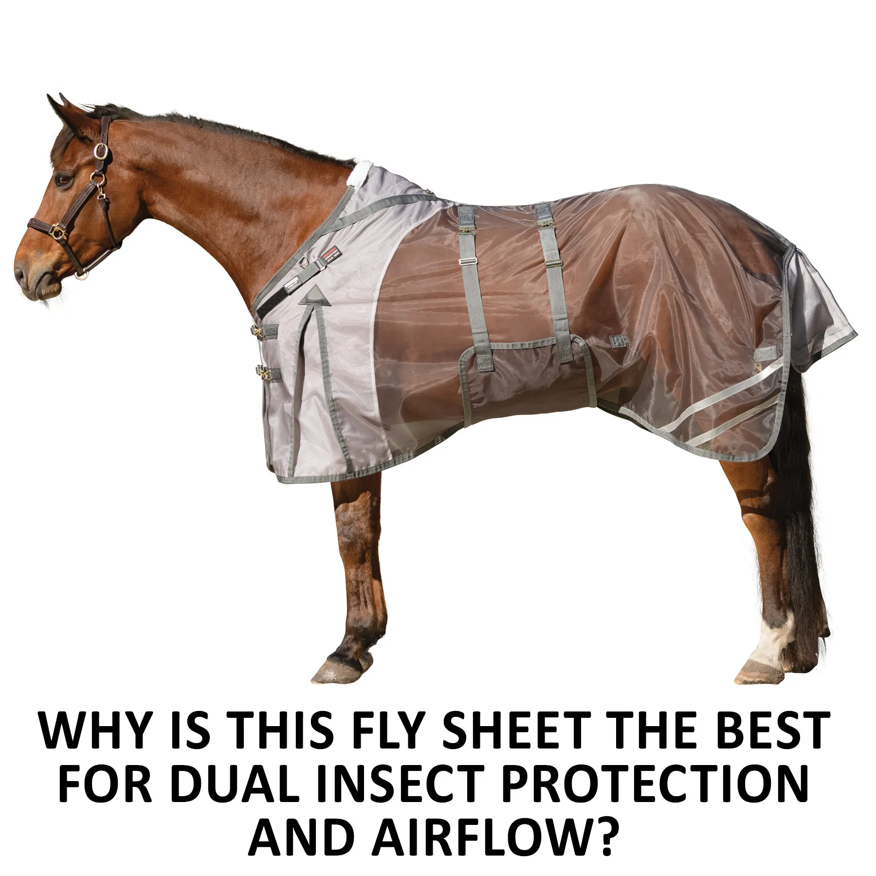 When choosing a fly sheet for your horse, the key considerations should include fabric breathability and durability, insect and UV protection needed depending on turnout needs. This sheet is perfect if your horse needs the best insect protection and airflow or lives in a hot, buggy climate.