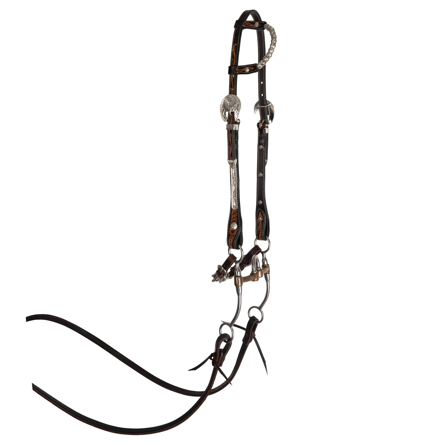 Step into the ring with style using our One Ear Silver Wave Two-Tone Show Headstall. Made from high-quality Argentine leather, this Western headstall features elegant silver plate detailing and a sleek one-ear design. Its light and dark tones pair easily with any saddle, making it a versatile choice for both main events and backup show days.
