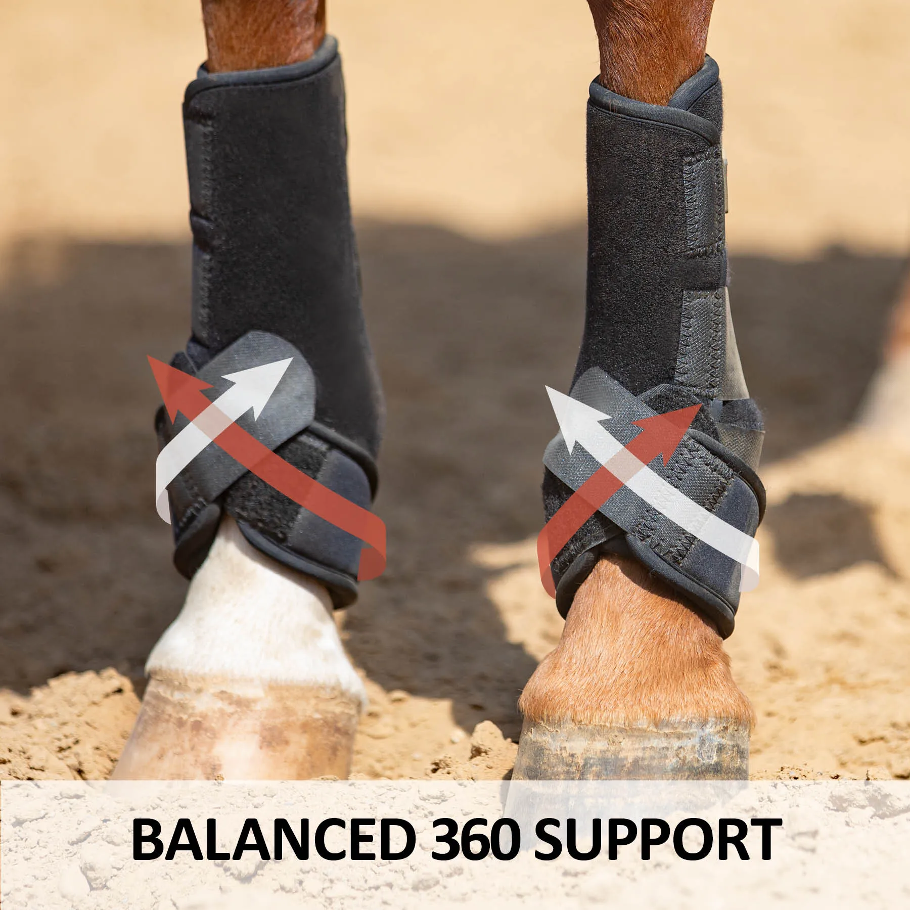 These OrthoBalance front and hind boots are the perfect all-around boot for every discipline, especially for those disciplines that need extra support or therapy support when needed. The unique one-strap fetlock design allows for an equally balanced pull towards the front to help better support from hyperextension. The boots are made with a durable outside shell and inside lining that keeps your horse cool, wicks away moisture, absorbs sweat, and fights off skin irritations. When you need to provide ligament support down your horse's leg, always reach for these boots!