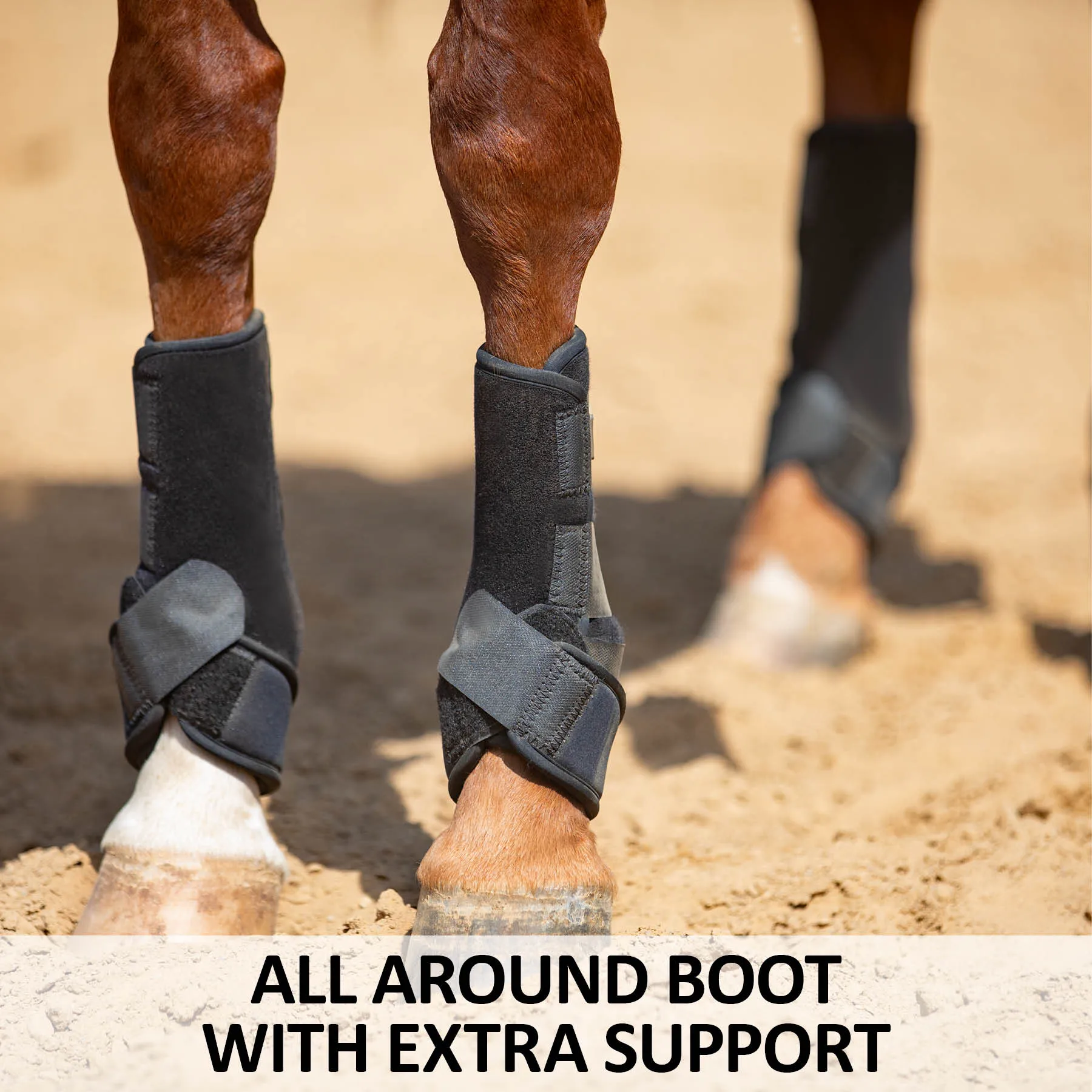 These OrthoBalance front and hind boots are the perfect all-around boot for every discipline, especially for those disciplines that need extra support or therapy support when needed. The unique one-strap fetlock design allows for an equally balanced pull towards the front to help better support from hyperextension. The boots are made with a durable outside shell and inside lining that keeps your horse cool, wicks away moisture, absorbs sweat, and fights off skin irritations. When you need to provide ligament support down your horse's leg, always reach for these boots!