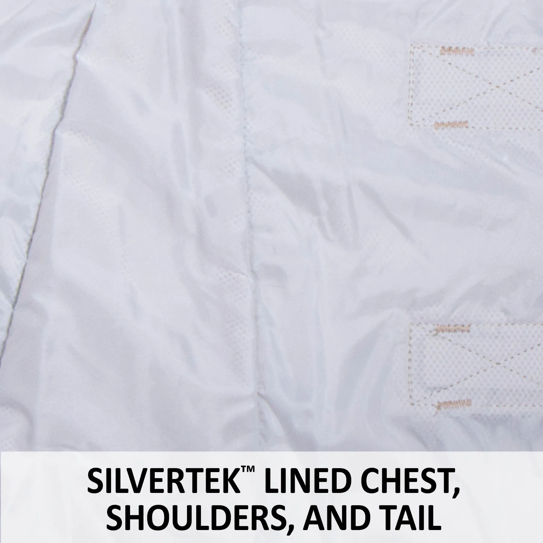 - Innovative SilverTek® technology with antibacterial properties on chest, shoulder, tail flap lining, and the attached neck styles