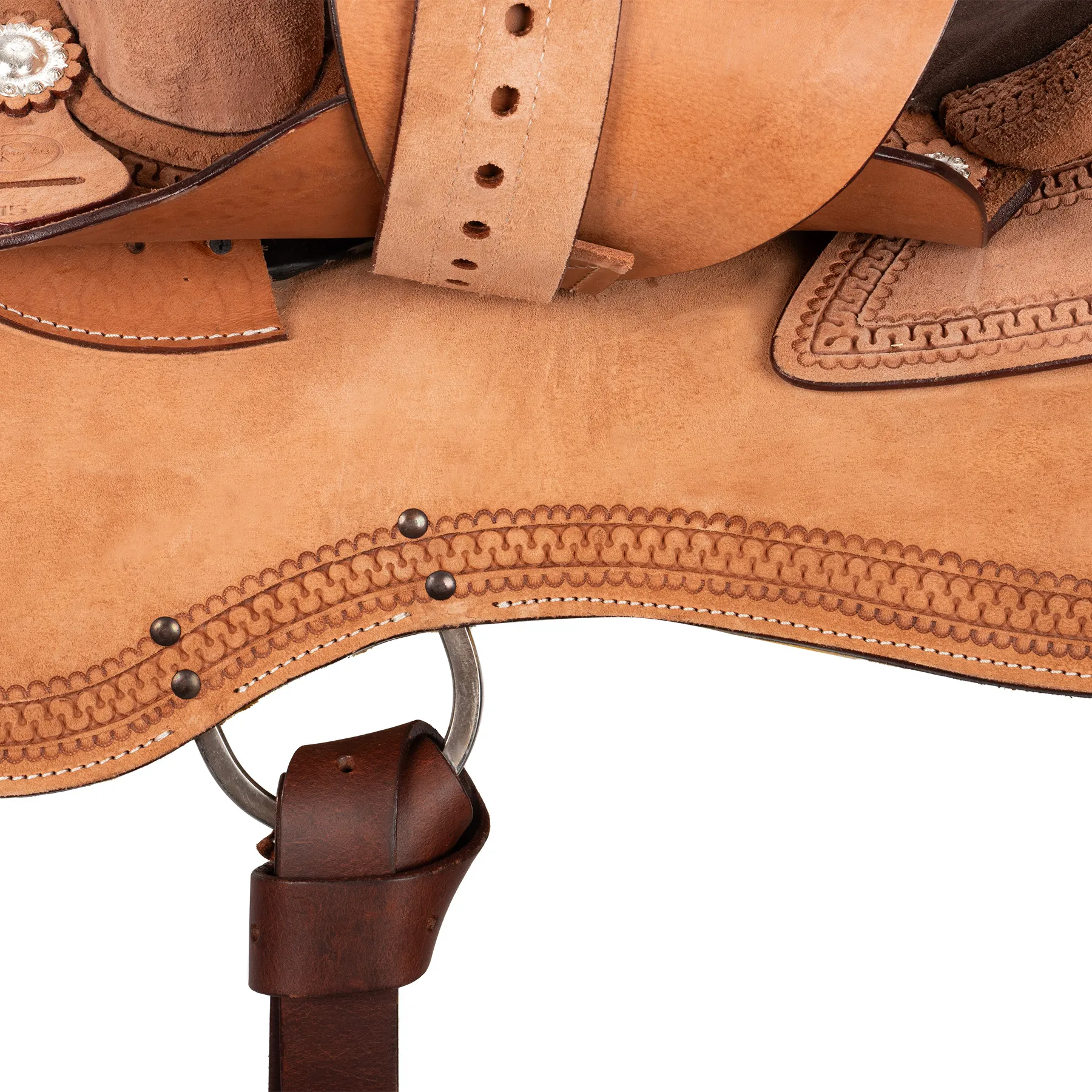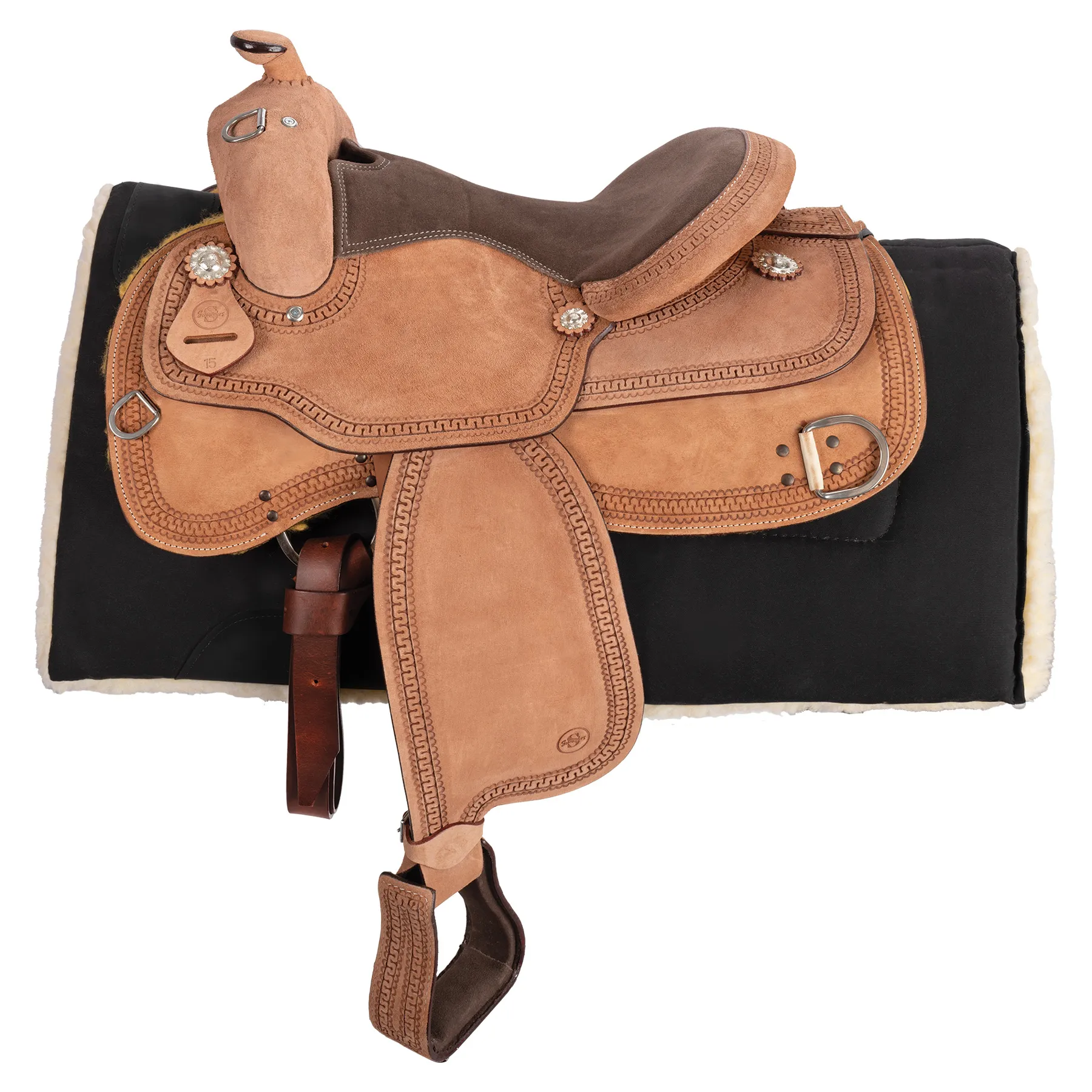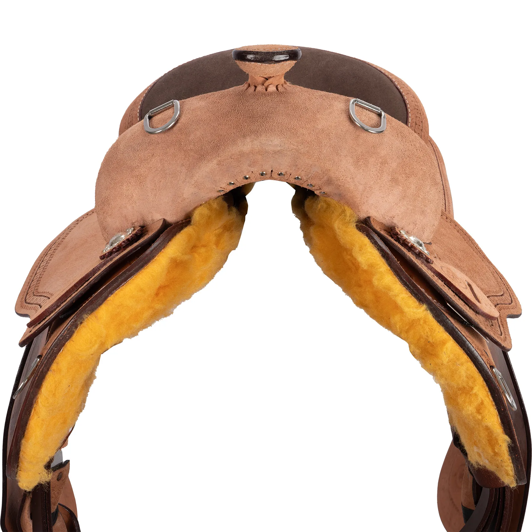 Perfectly blending superior quality and affordability, this western work saddle is designed with full horse bars to accommodate most conformations and a close contact feel for an optimal connection with your horse. It even features a total roughout design for added grip and security for training rides or ranch work. Plus, the saddle is made from a super lightweight injected-molded plastic tree and has a 5-year warranty.