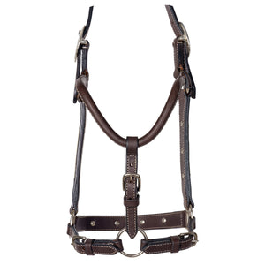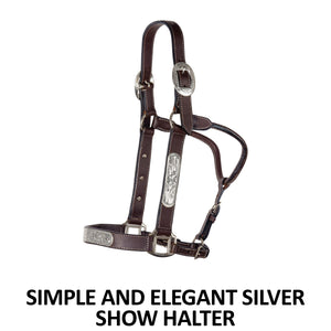 Enter the show ring in style with this starter show halter for the 4H or Open rider. It’s crafted from high-quality Argentine leather with cream accent stitching and beautiful, hand-engraved silver plating over the nose and cheek. This halter is extremely adjustable and fits most head sizes for an elevated look. Not only is it of exceptional quality, but it’s at an unbeatable price.