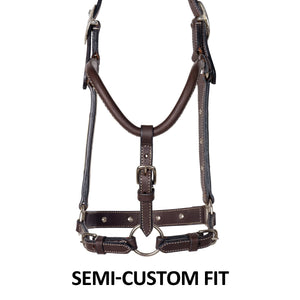The 1" wide leather, double adjustable crown, and shapeable throatlatch with a 3-piece gullet and curb system allow for ample adjustments for a semi-custom fit.