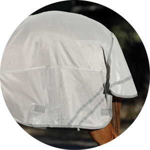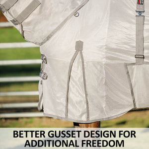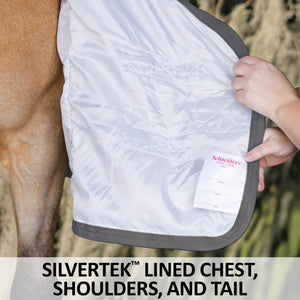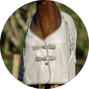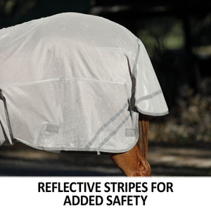 When looking for the best UV protection for your horse, look no further than this fly sheet. This sheet is designed in our Euro fit that’s comfortable for all breeds and has a bellyband closure for extra protection from biting insects. These sheets are made from a soft and comfortable 300D polyester interlock mesh material offering an impressive 80% UV protection level and the best protection against small to medium-sized insects, like gnats and flies. Plus, it features NEW reflective stripes for safety and SilverTek® technology with antibacterial nylon lining on the chest, shoulders, and tail flap.
