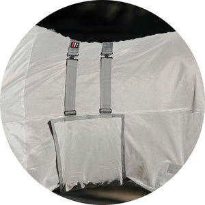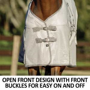 The open front design features double front buckles with new and improved wider hook and loop closures, allowing you to easily adjust the fly sheet for the perfect amount of “snugness” at the front of the chest. Plus, the buckles make it easy to put on and remove.