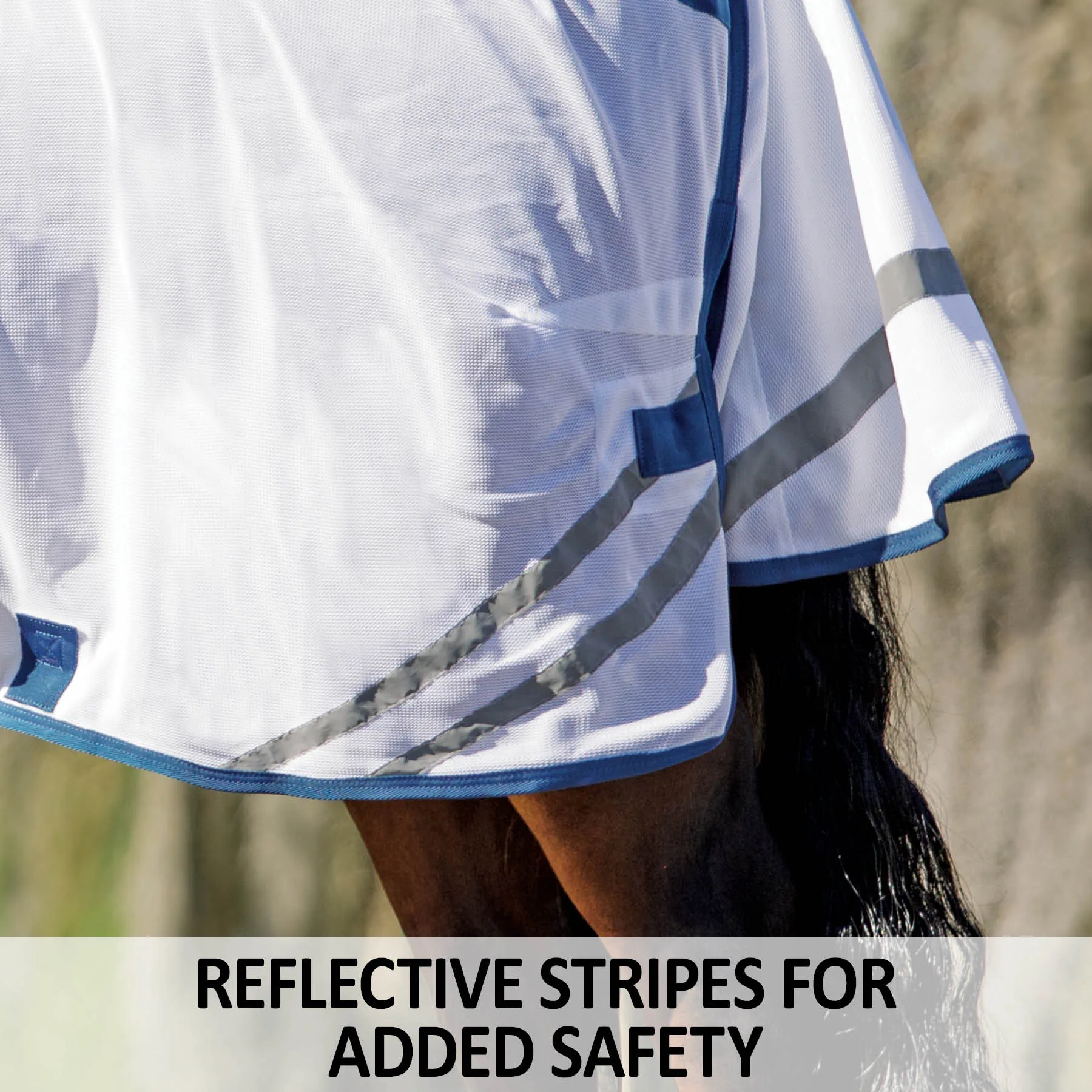 When looking for the best UV protection for your horse, pony, or even mini, look no further than this fly sheet. These sheets are made from a soft and comfortable 300D polyester interlock mesh material offering an impressive 80% UV protection level and the best protection against small to medium-sized insects, like gnats and flies. Plus, it features NEW reflective stripes for safety and SilverTek™ technology with antibacterial nylon lining on the chest, shoulders, and tail flap.