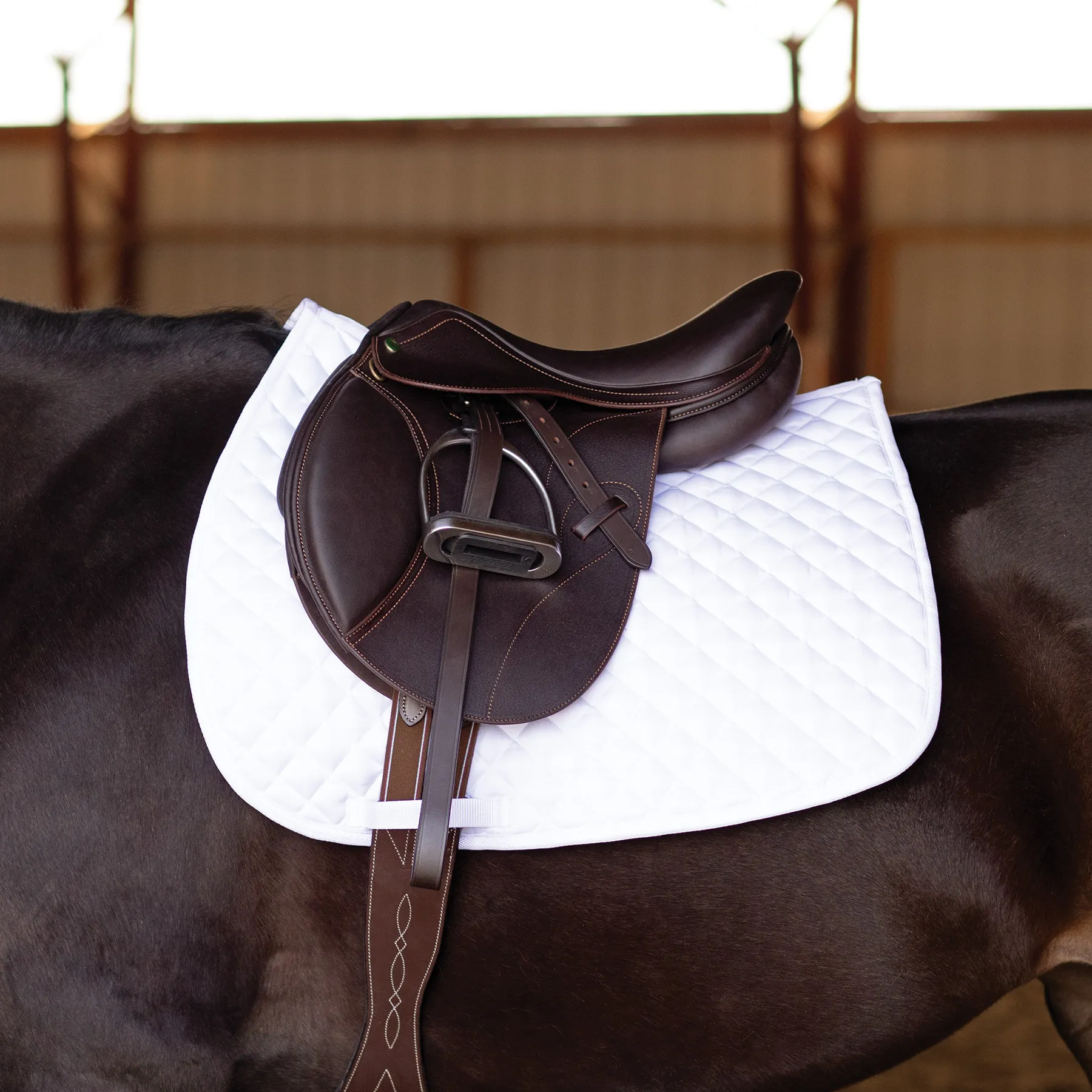 Designed for comfort and performance, this Contoured All Purpose Quilted Saddle Pad provides a secure fit with self-lifting wither relief. Its soft cotton/poly blend, stylish quilting, and durable construction make it an excellent choice for both schooling and showing.