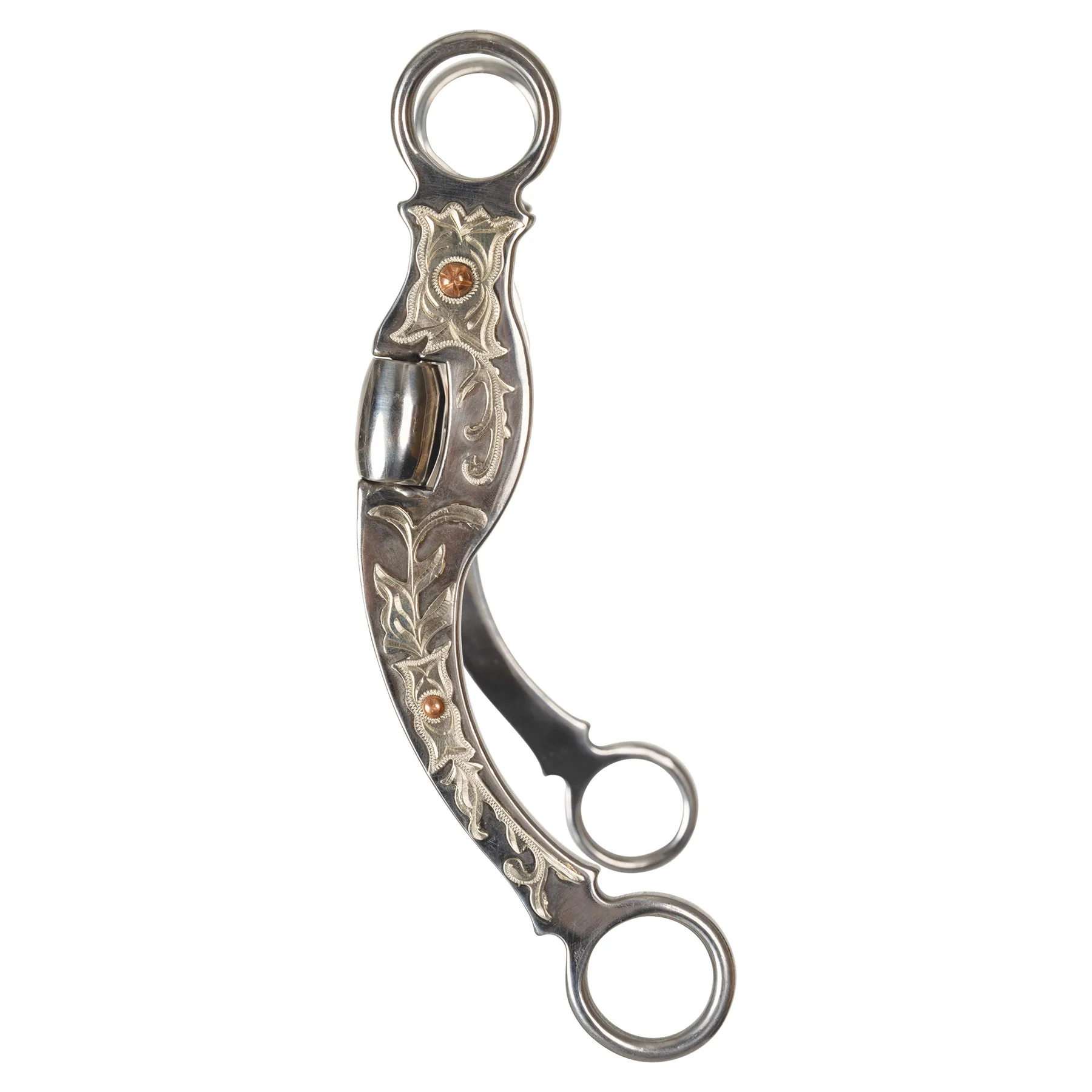 Enhance your horse's responsiveness with this stainless steel correction bit, designed for more precise communication and improved head carriage. The 2" raised correction port applies targeted pressure to encourage poll flexion, while the copper roller stimulates salivation to keep the horse's mouth soft and comfortable. With polished silver trim and copper dot accents, this bit is as stylish as it is effective.