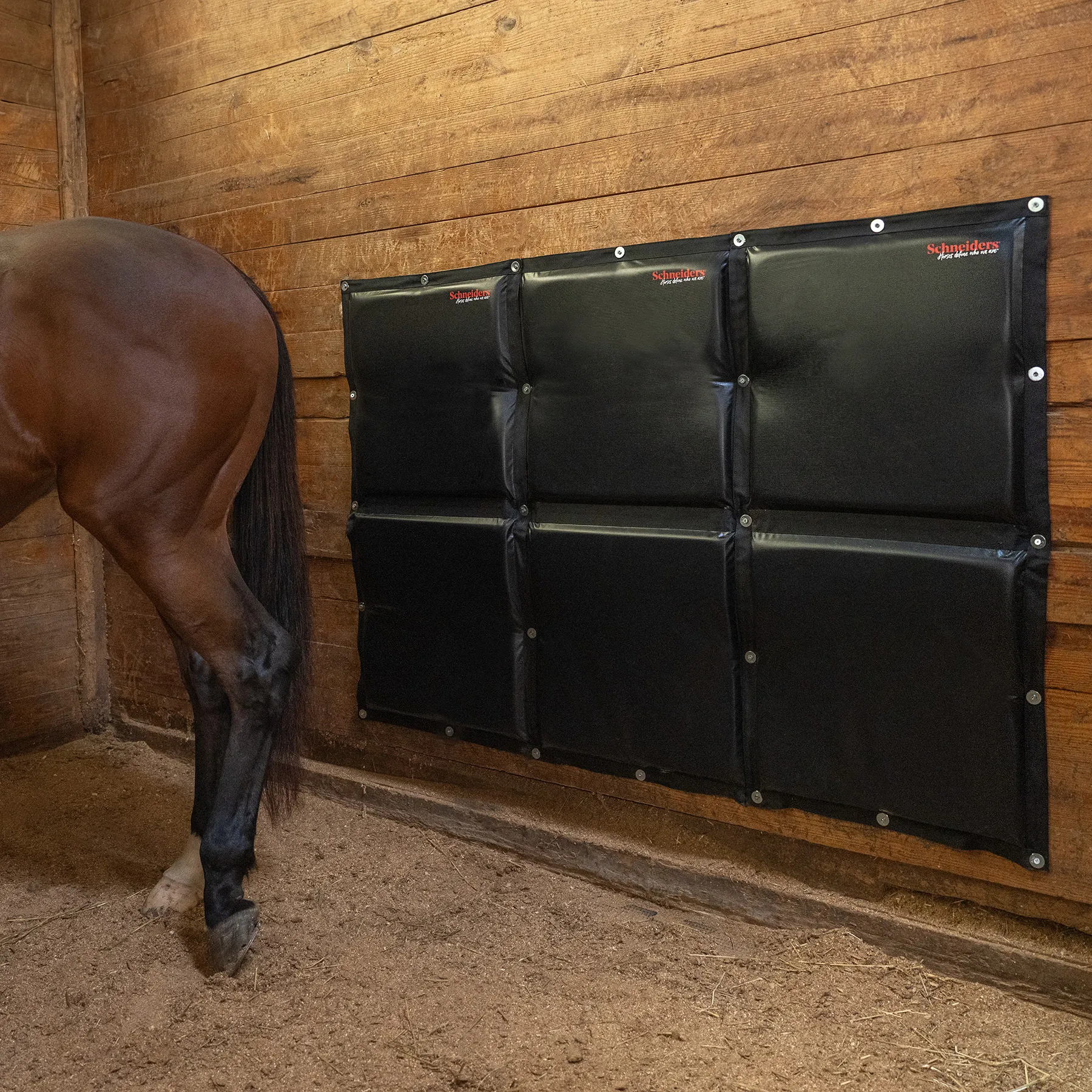 Protect your horse and your stall walls with our kick pads for your stall walls. Designed for high-impact areas, each pad measures 2ft x 4ft and features 1.5" thick padding to absorb kicks and reduce injury risk. The durable double PVC vinyl exterior is easy to clean and built to last, while strategically placed grommets make installation quick and customizable to any stall size.