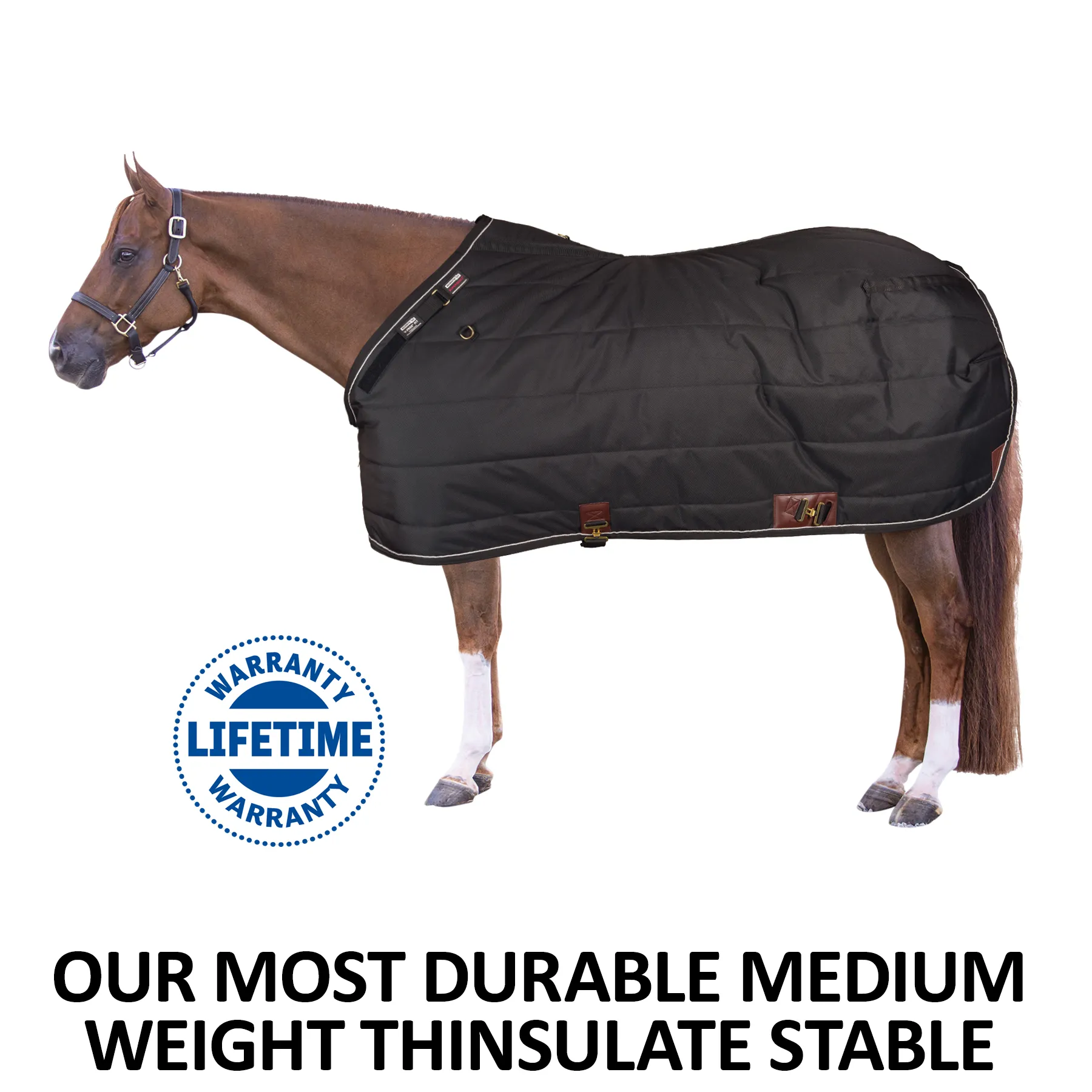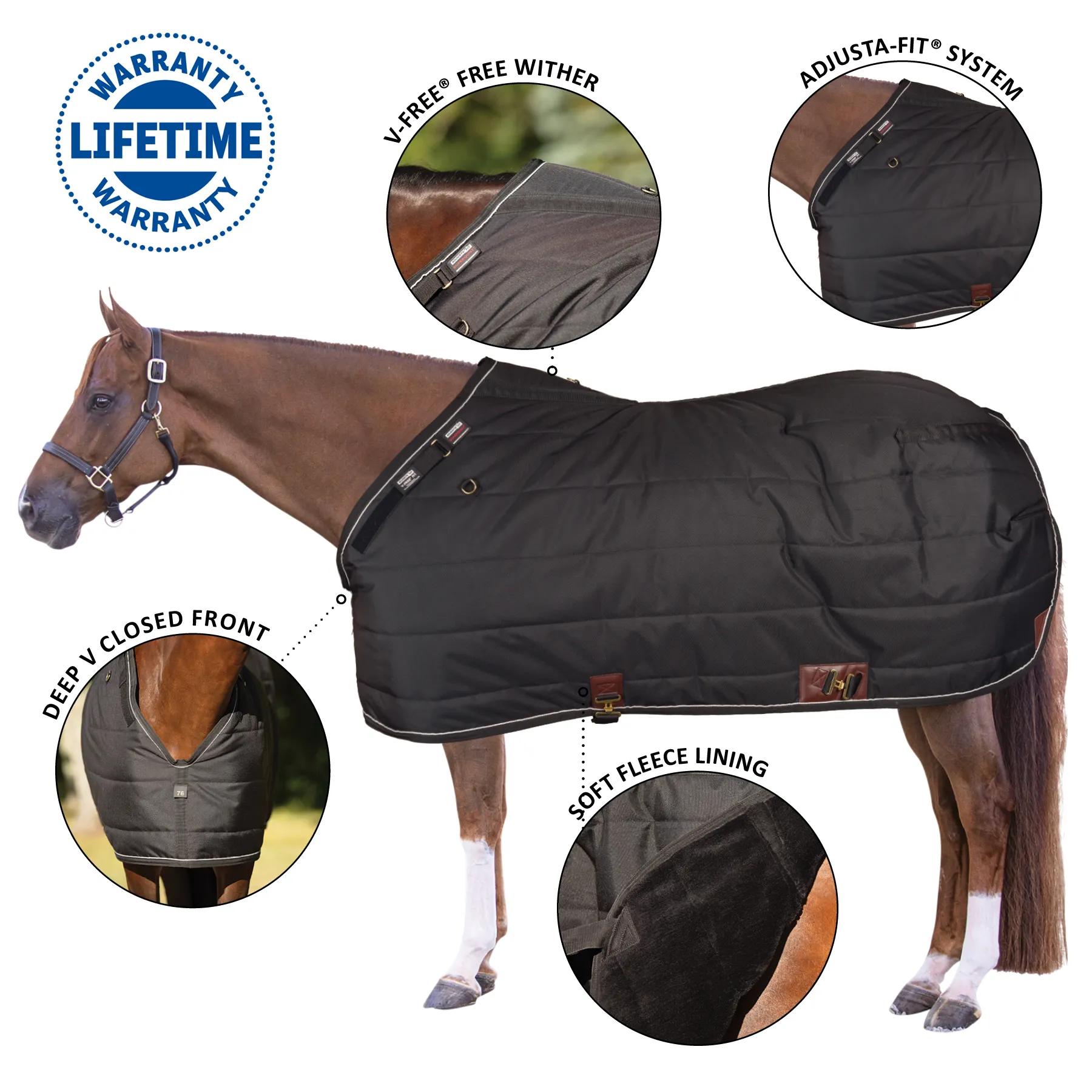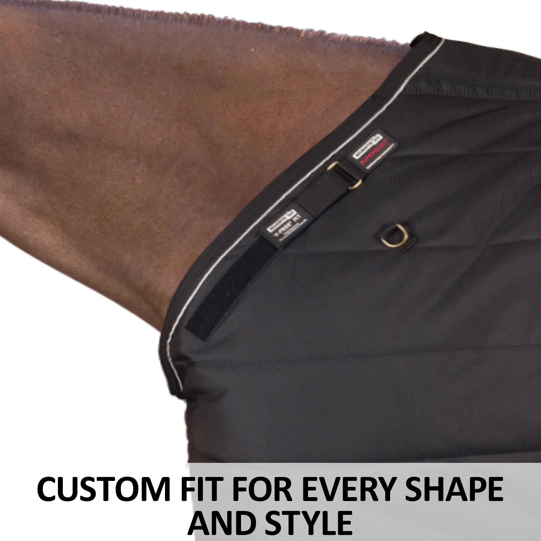 Give your horse unmatched warmth and durability with this heavy-duty medium weight stable blanket, built to last a lifetime. Designed with 1200D SuperQuilt® woven polyester, ultra-light yet toasty 60g Thinsulate™ insulation, and the plush comfort of a soft Comfi lining, this blanket delivers unbeatable warmth without bulk. Its breathable design prevents overheating in the stable, while the patented Adjusta-Fit® system lets you tailor the neck size up to 2 inches for a truly custom fit, no matter your horse's shape or breed.