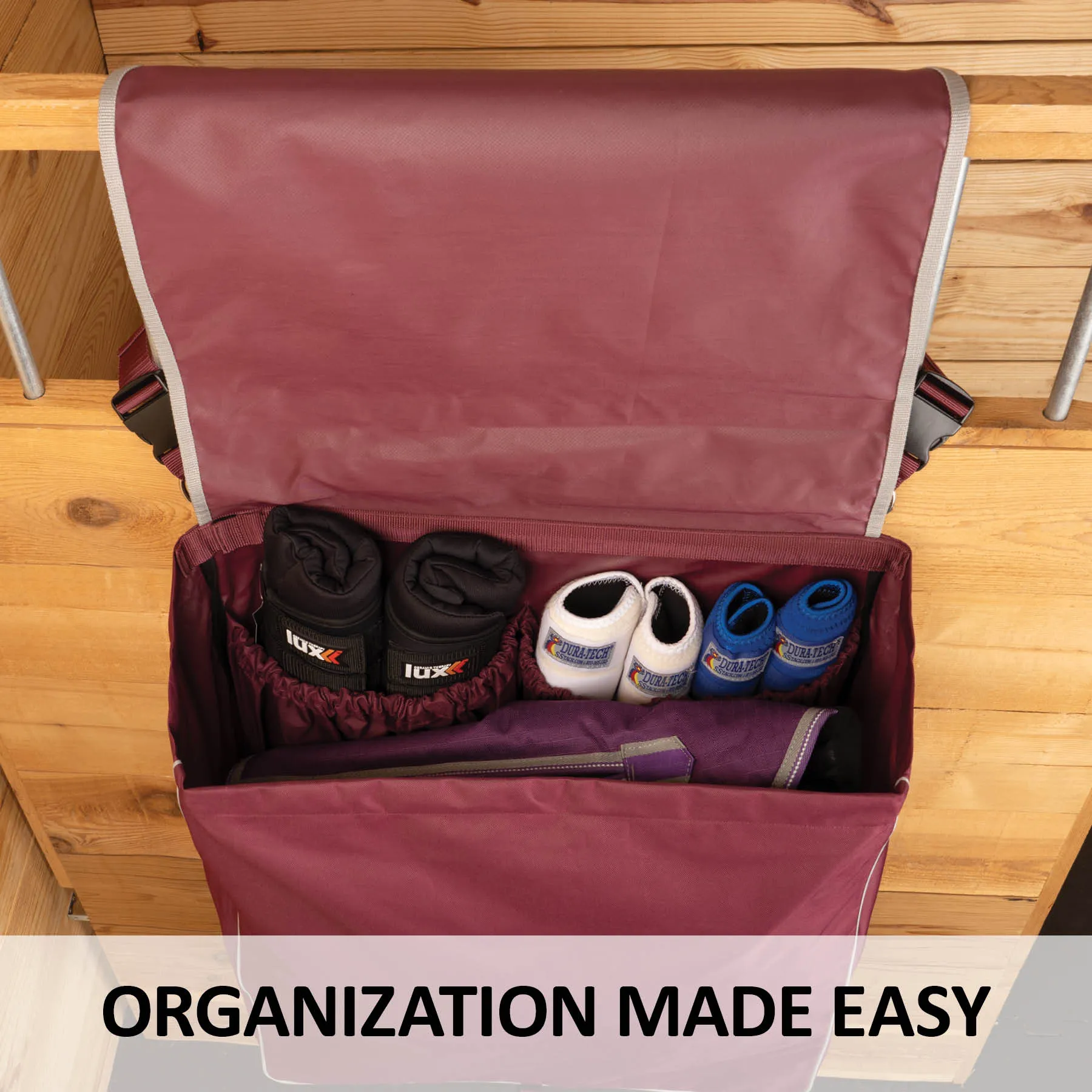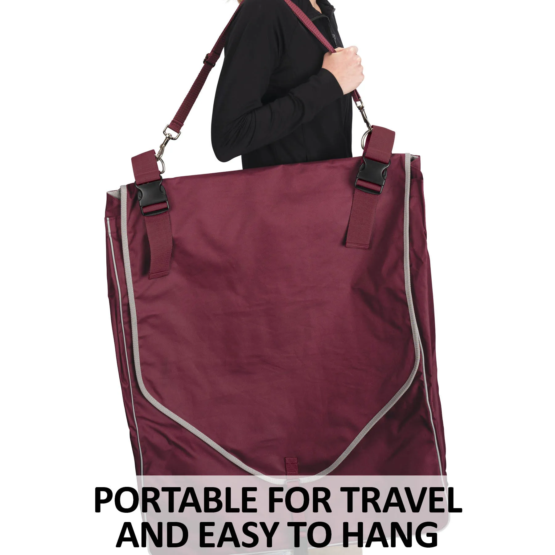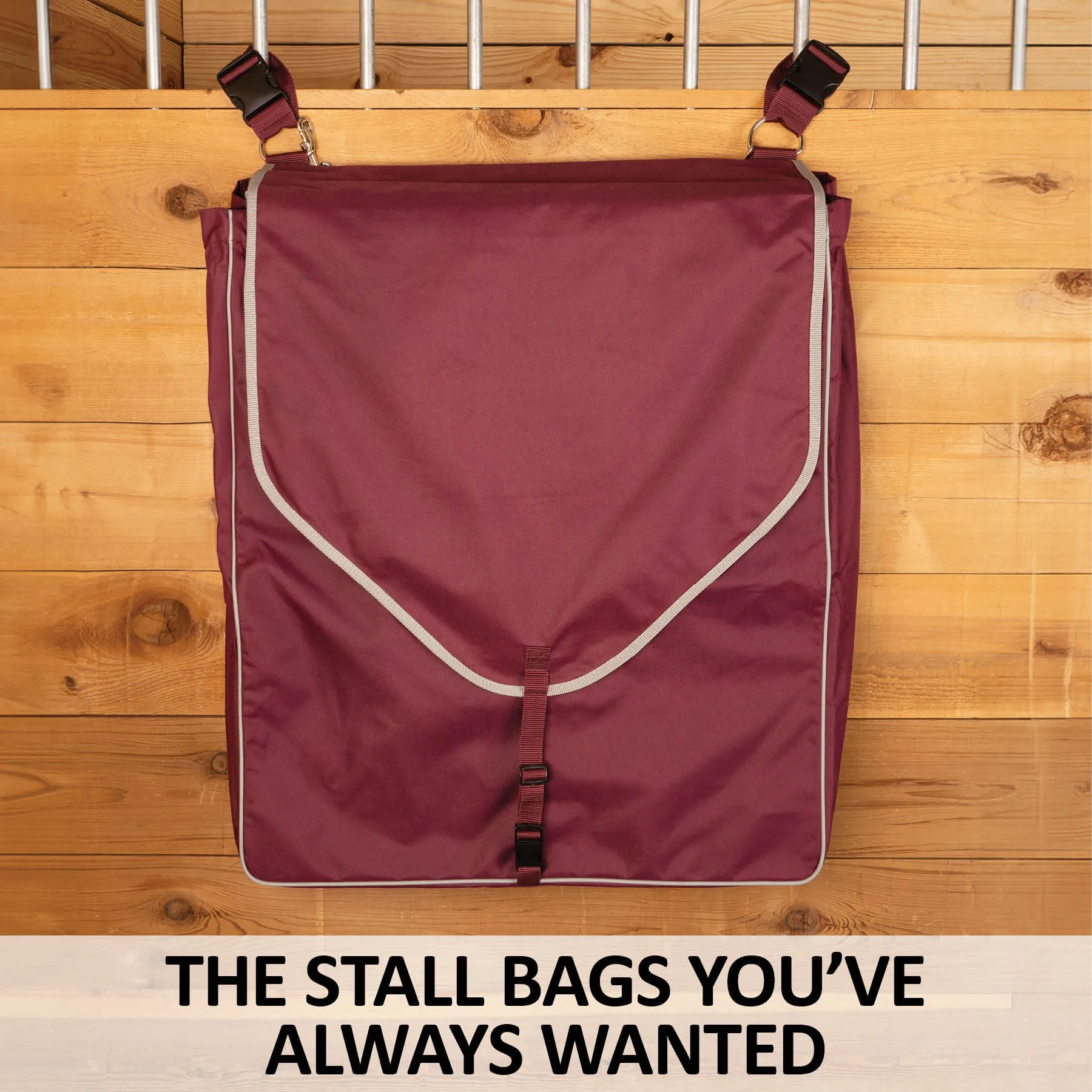 Available in multiple styles to fit your needs, we've designed the stall bag you've always wanted! Not only does this stall bag extend the life of your items by keeping them clean, but it also helps keep your barn aisle tidy. Made of 600 denier polyester and Teflon coated, this bag is durable enough to hold it all. It also has a metal bar (removable for washing) that helps this bag stay in shape.