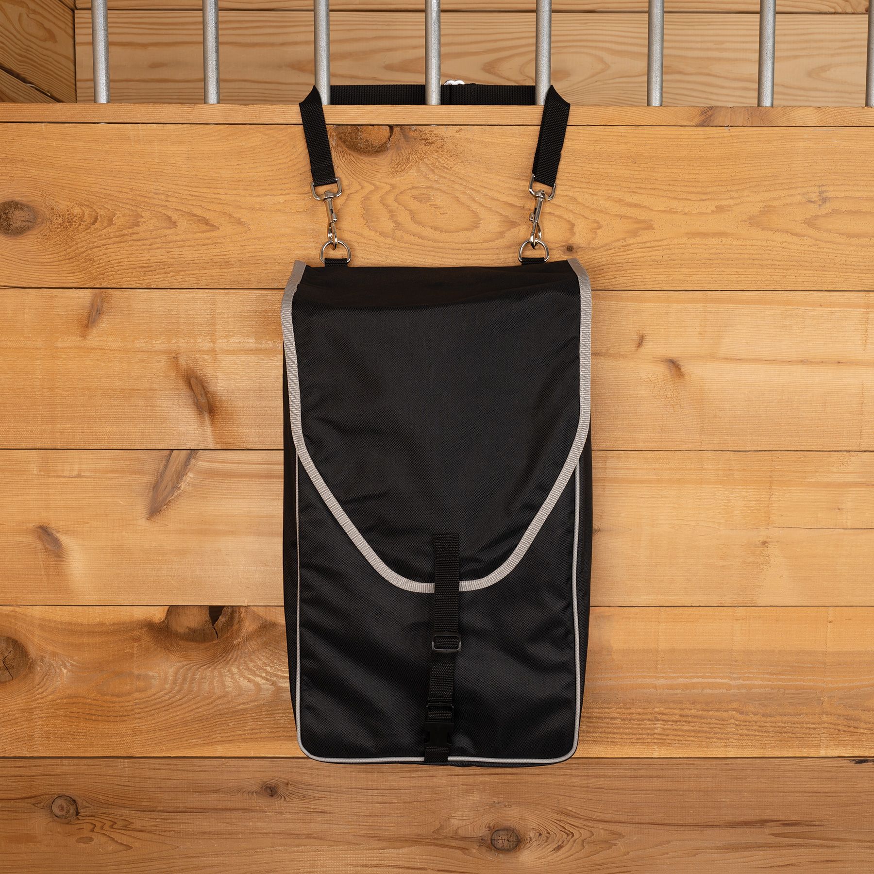We've designed the stall bag you've always wanted! Not only does this stall bag extend the life of your items by keeping them clean, but it also helps keep your barn aisle tidy. Made of 600 denier polyester and Teflon coated, this bag is durable enough to hold it all. It also has a metal bar (removable for washing) that helps this bag stay in shape.