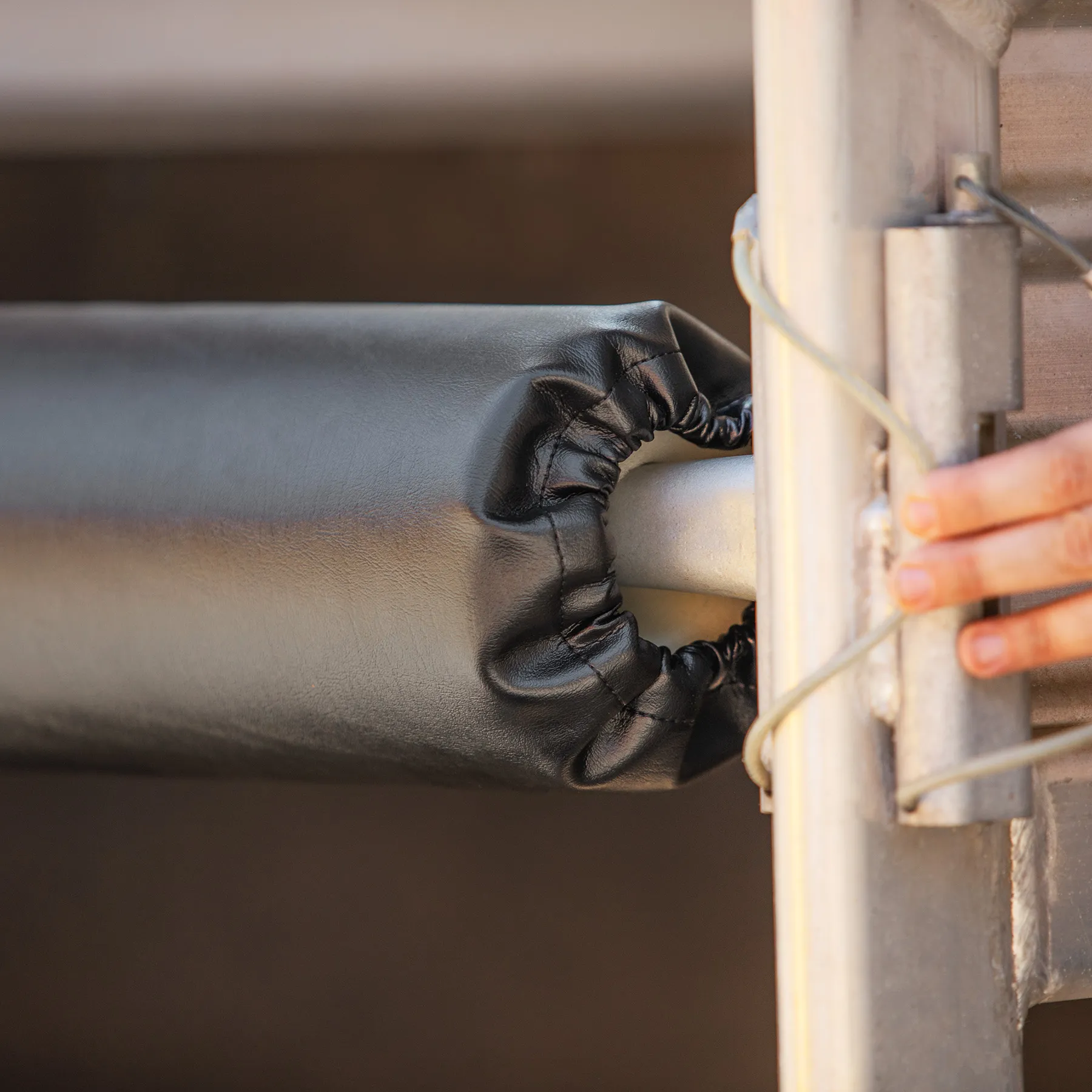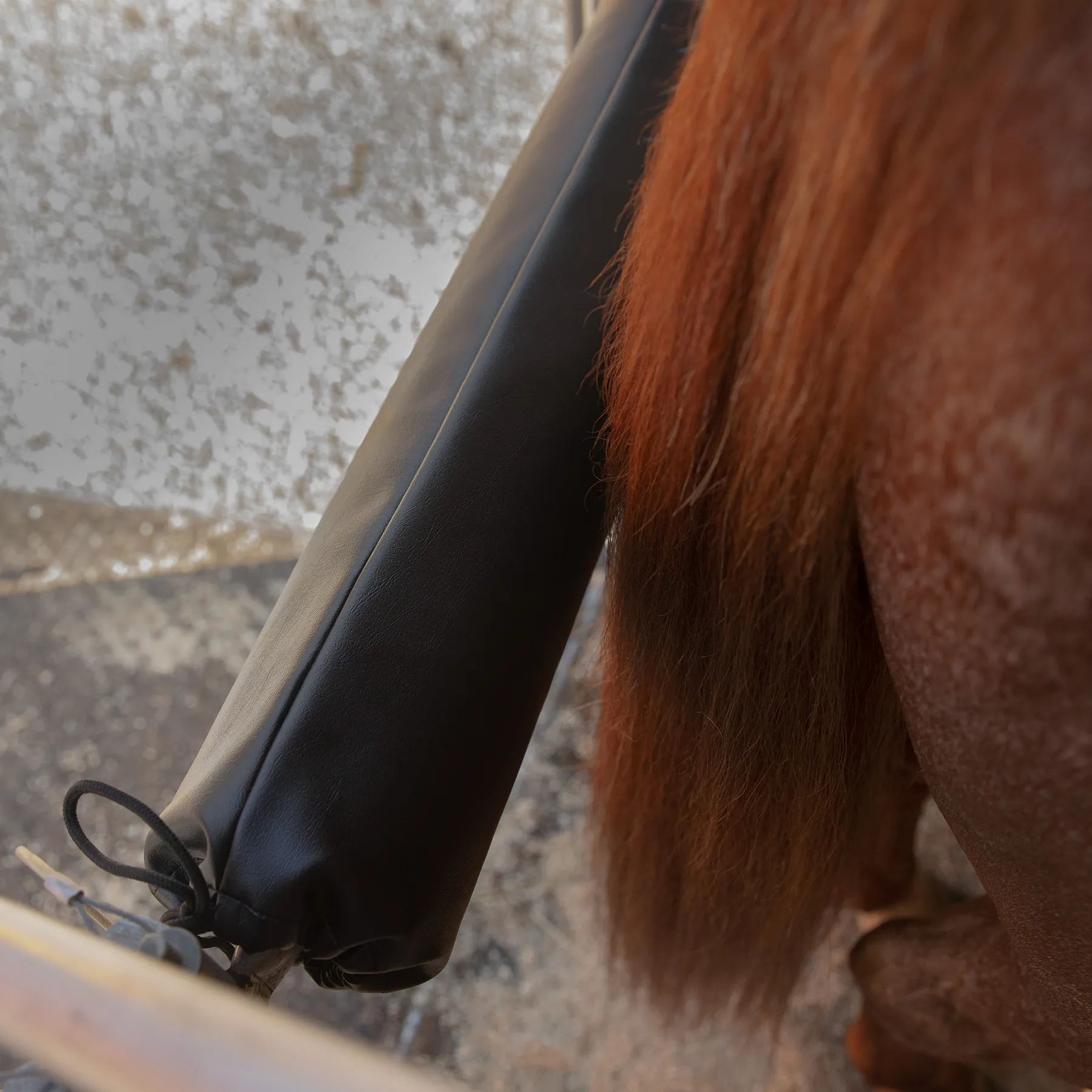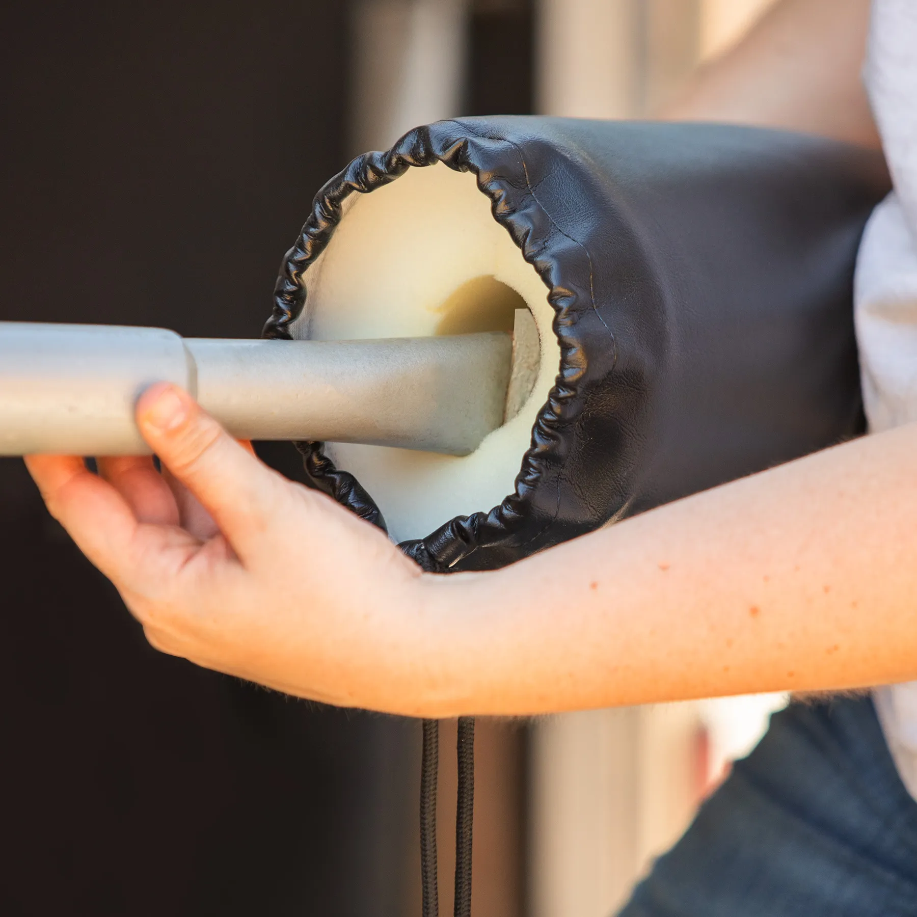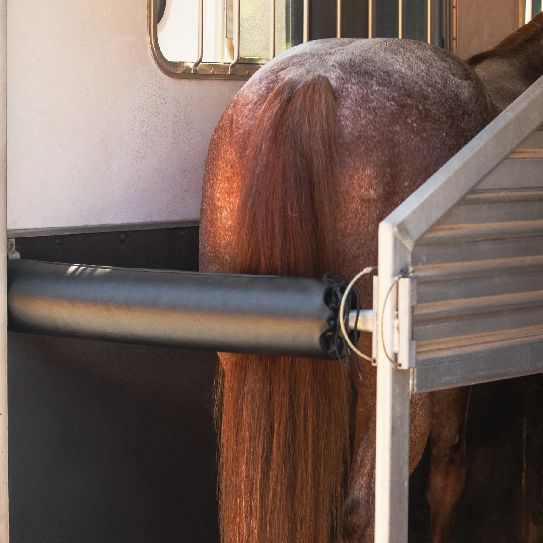 Ensure your horse rides safely and comfortably with this padded trailer bar cover. Designed to cushion against hard trailer chest or butt bars, it features 1.5" thick foam padding encased in a durable, water-repellent material that wipes clean with ease. The 30" length and 5.25" diameter offer generous coverage, while drawstring ends keep the cover securely in place during travel.