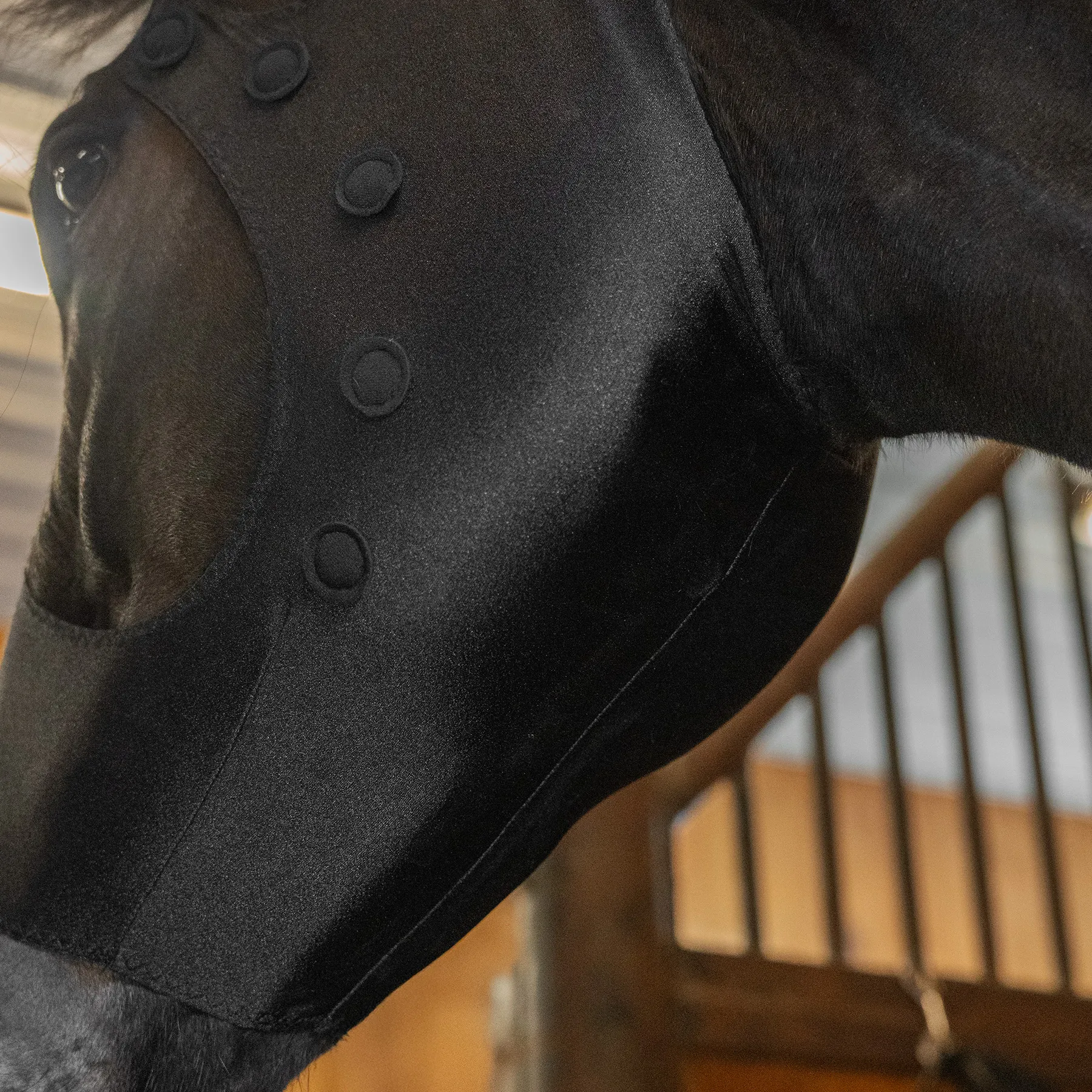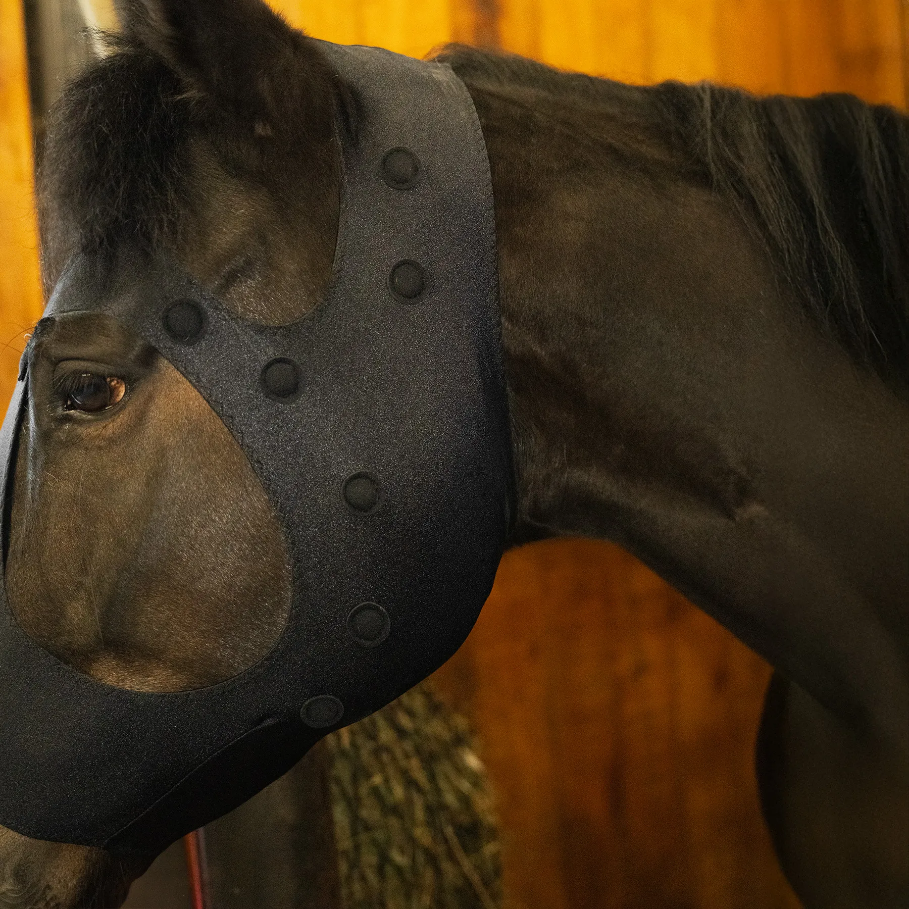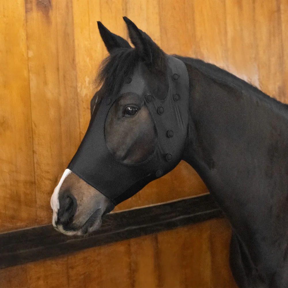Help your horse relax and unwind with targeted magnetic support. This stretch therapy mask is designed to help reduce tension and calm overstimulated horses by placing magnets over key muscle and nerve areas including the forehead, eyes, ears, poll, and jaw. The soft, flexible lycra design offers a comfortable pull on fit while delivering therapeutic support where your horse needs it most, making it a helpful addition to your horse's stall routine.