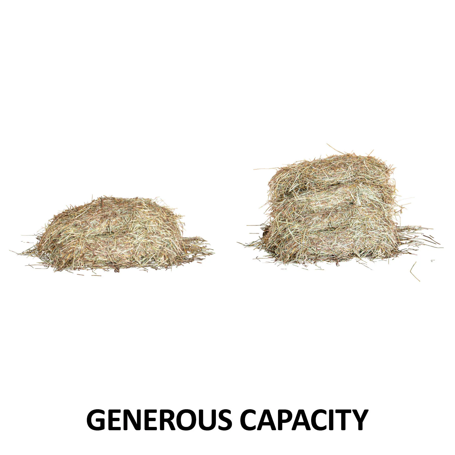 Fits up to 2-4 large flakes of hay, depending on bag size