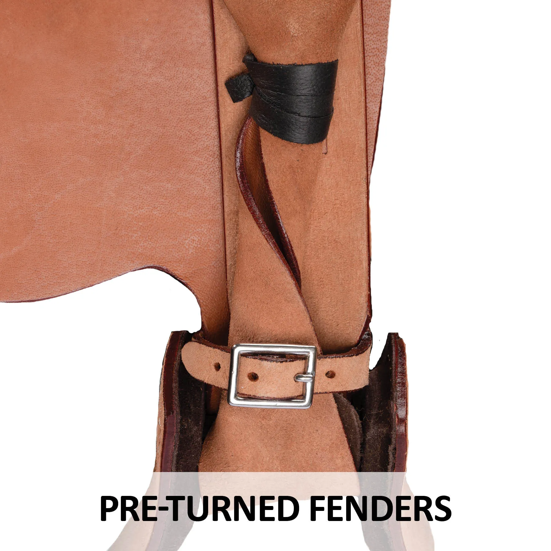- Includes heavy-duty hardware, latigo strap, and off-billet