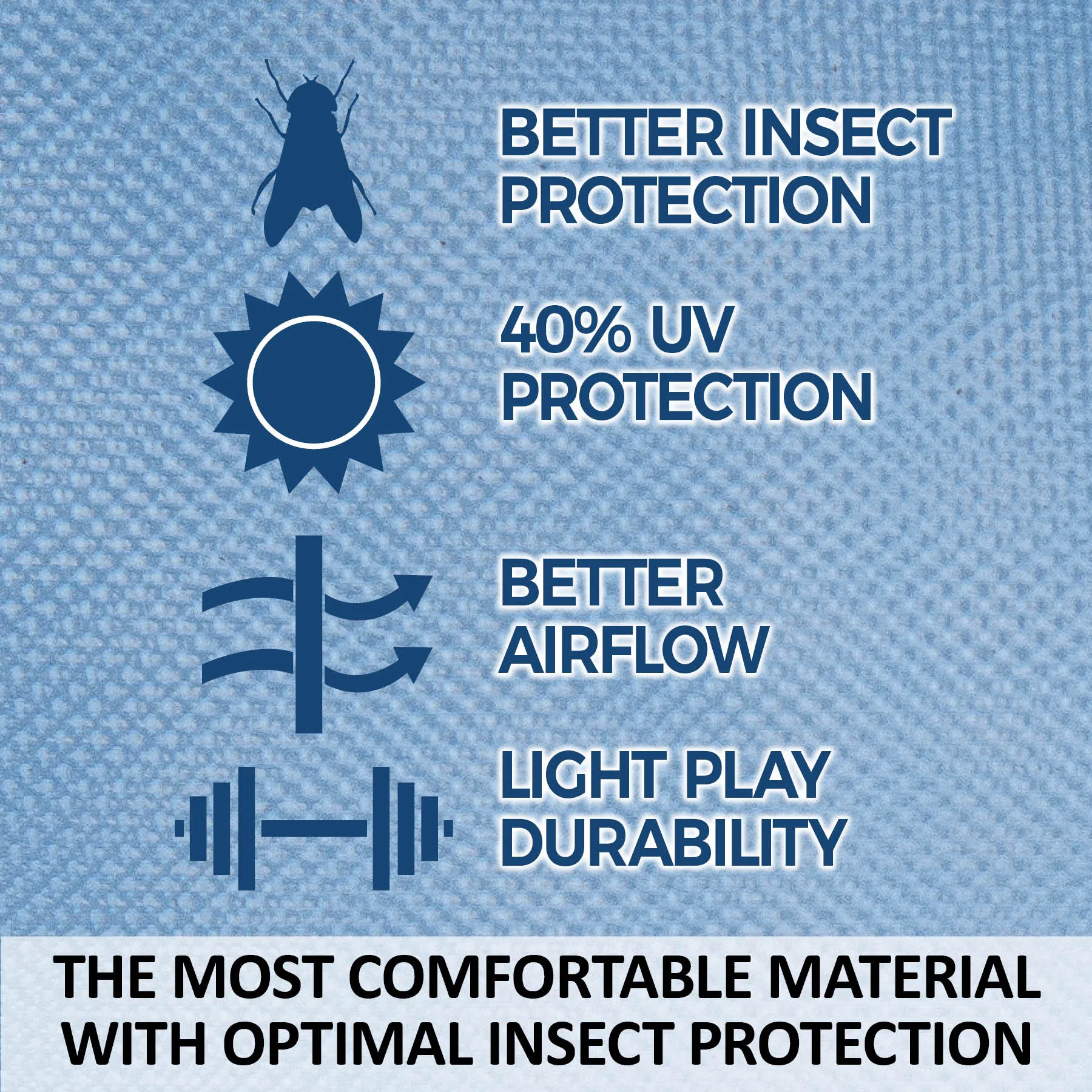 - Best at protecting against small to medium-sized biting insects
