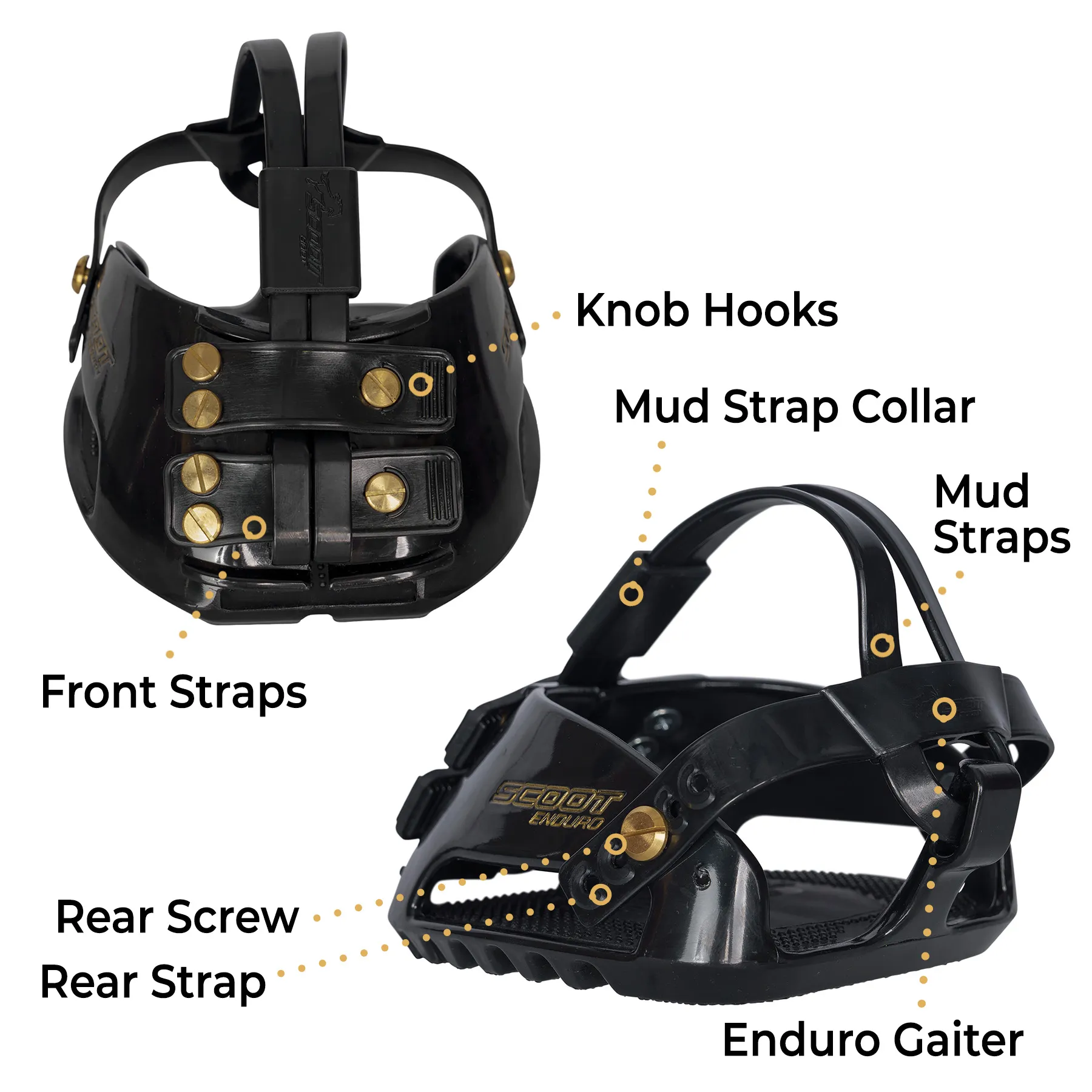 - Includes a range of mud straps for correct sizing