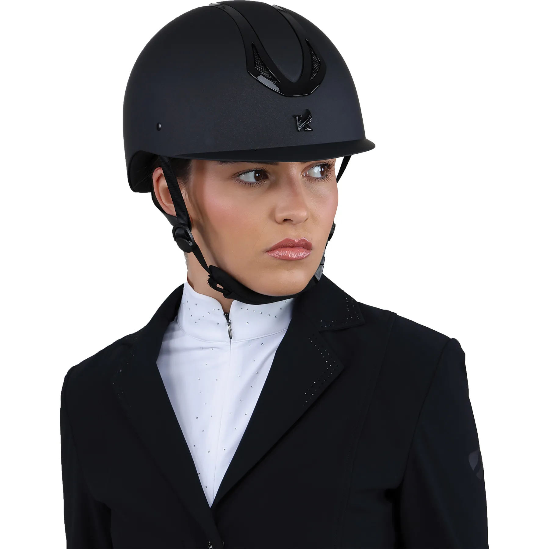 Ride with confidence and style in the Karben Silvia Helmet with Standard Peak. This sleek and low-profile horseback riding helmet offers top-tier safety certified to SEI ASTM F1163-23, while the TriVent Sonic Air ventilation system and micro-adjustable bespoke fit dial keep you comfortable from warm-up to cool-down.