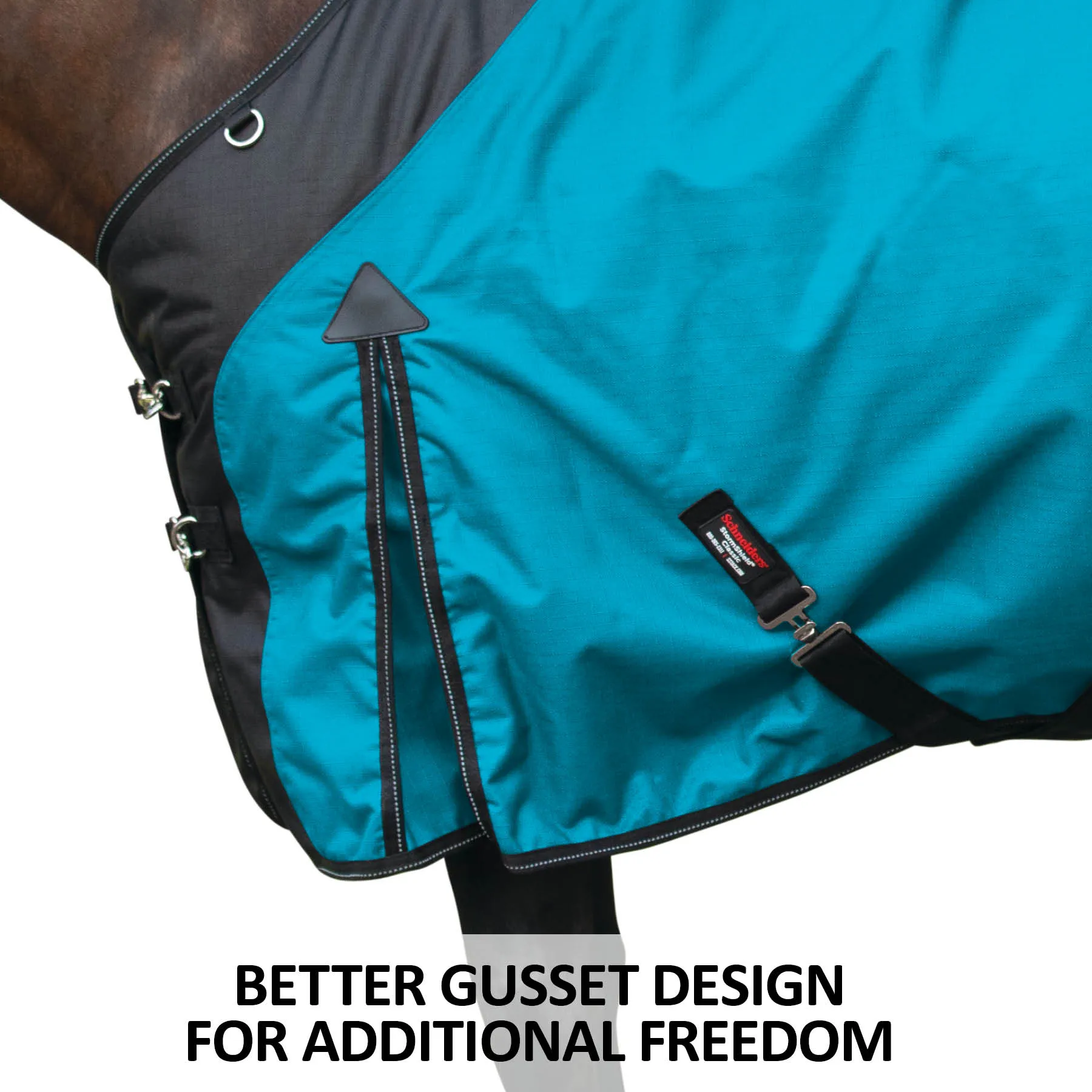 StormShield® II Blankets are meticulously crafted to provide your horse unparalleled protection against harsh weather conditions. Made with new and improved waterproof and breathability ratings, these blankets are more waterproof than competitive brands and offer exceptional breathability, ensuring that your horse stays dry, comfortable, and well-ventilated. The lack of side and back seams helps create an extremely waterproof blanket, plus adds strength and durability to the blanket, so you'll have peace of mind that your horse is always dry. No matter how playful they are in the pasture, StormShield® II Blankets will keep your horse cozy and protected, allowing them to enjoy the outdoors to the fullest.