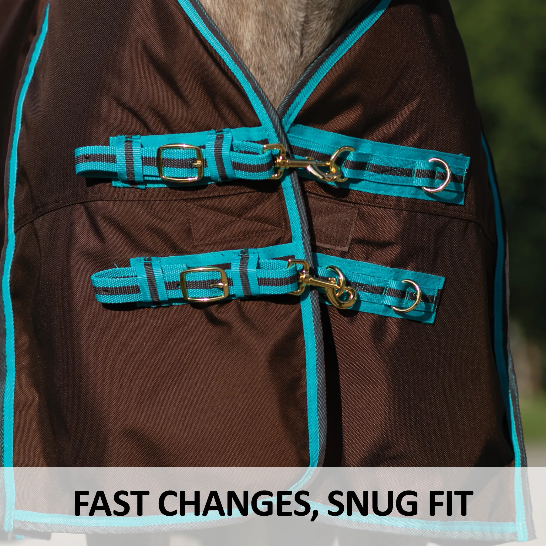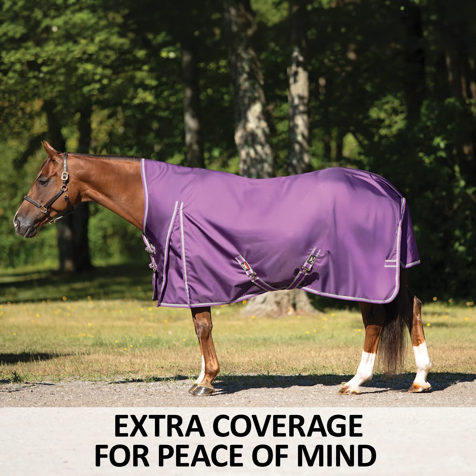 StormShield® II Blankets are meticulously crafted to provide your horse unparalleled protection against harsh weather conditions. Made with new and improved waterproof and breathability ratings, these blankets are more waterproof than competitive brands and offer exceptional breathability, ensuring that your horse stays dry, comfortable, and well-ventilated. The lack of side and back seams helps create an extremely waterproof blanket, plus adds strength and durability to the blanket, so you'll have peace of mind that your horse is always dry. No matter how playful they are in the pasture, StormShield® II Blankets will keep your horse cozy and protected, allowing them to enjoy the outdoors to the fullest.