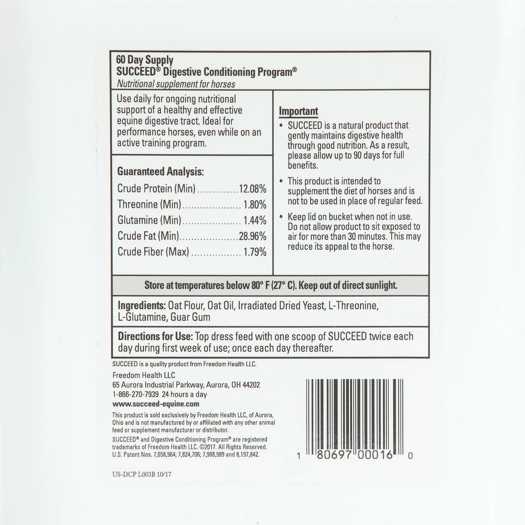 Important: Succeed is a natural functional feed program that maintains digestive health with specialized nutrients. Allow up to 90 days for full benefits. This product is intended to supplement horses' diets and is not to be used in place of regular feed. If you pump product from the syringe, do not allow it to sit exposed to air for more than 30 minutes. This may reduce the appeal to the horse.
