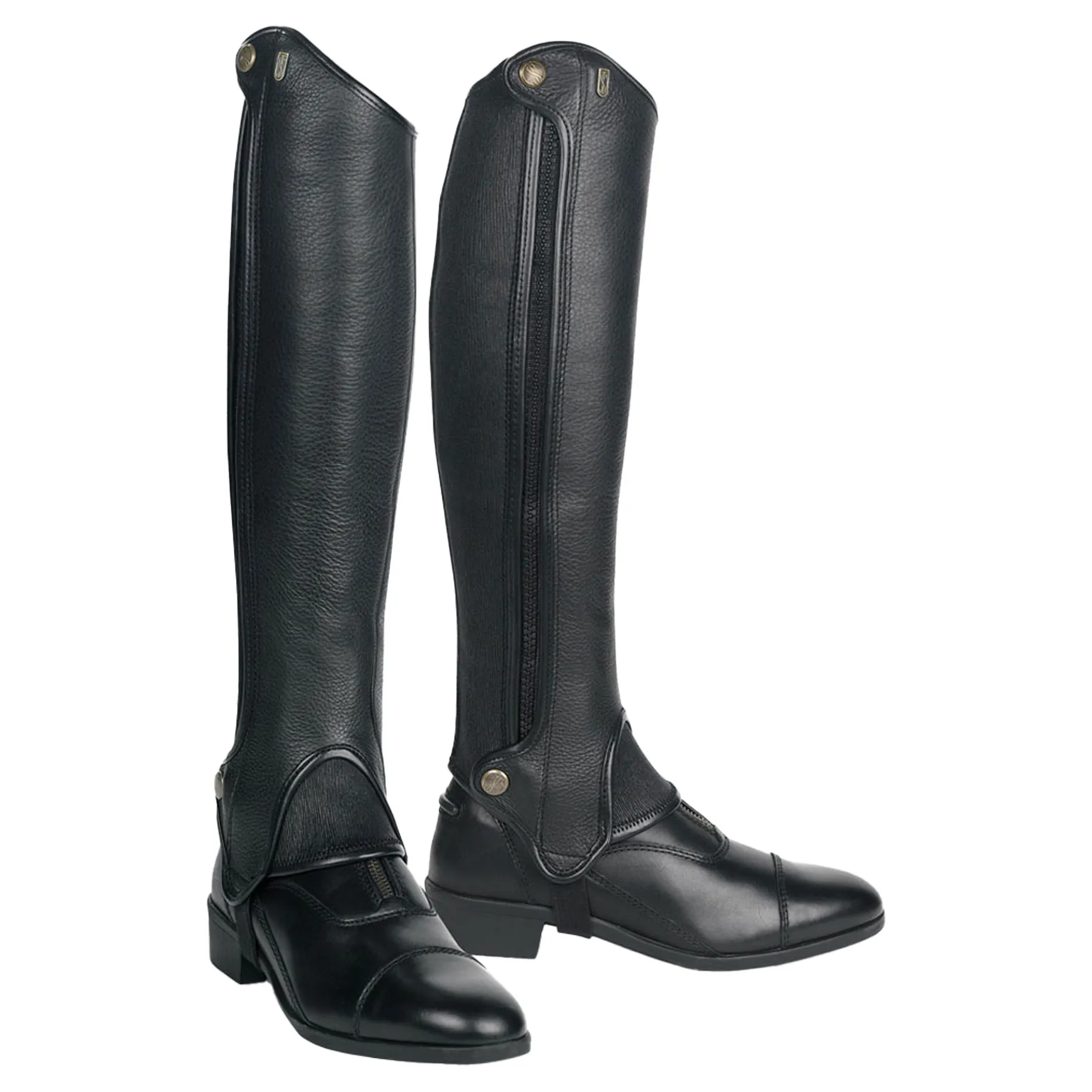 The Deluxe Half Chap, crafted with Tredstep's exclusive stretch leather, features a large outer panel set into a strong yet supple full-grain pebbled leather. The design, including an inside seam and stretch leather apron over the instep, ensures an incredible fit. But it's not just about fit - the chaps also boast a modern design that will elevate your equestrian style. It's a superstar among chaps, combining comfort and style in a contemporary package.