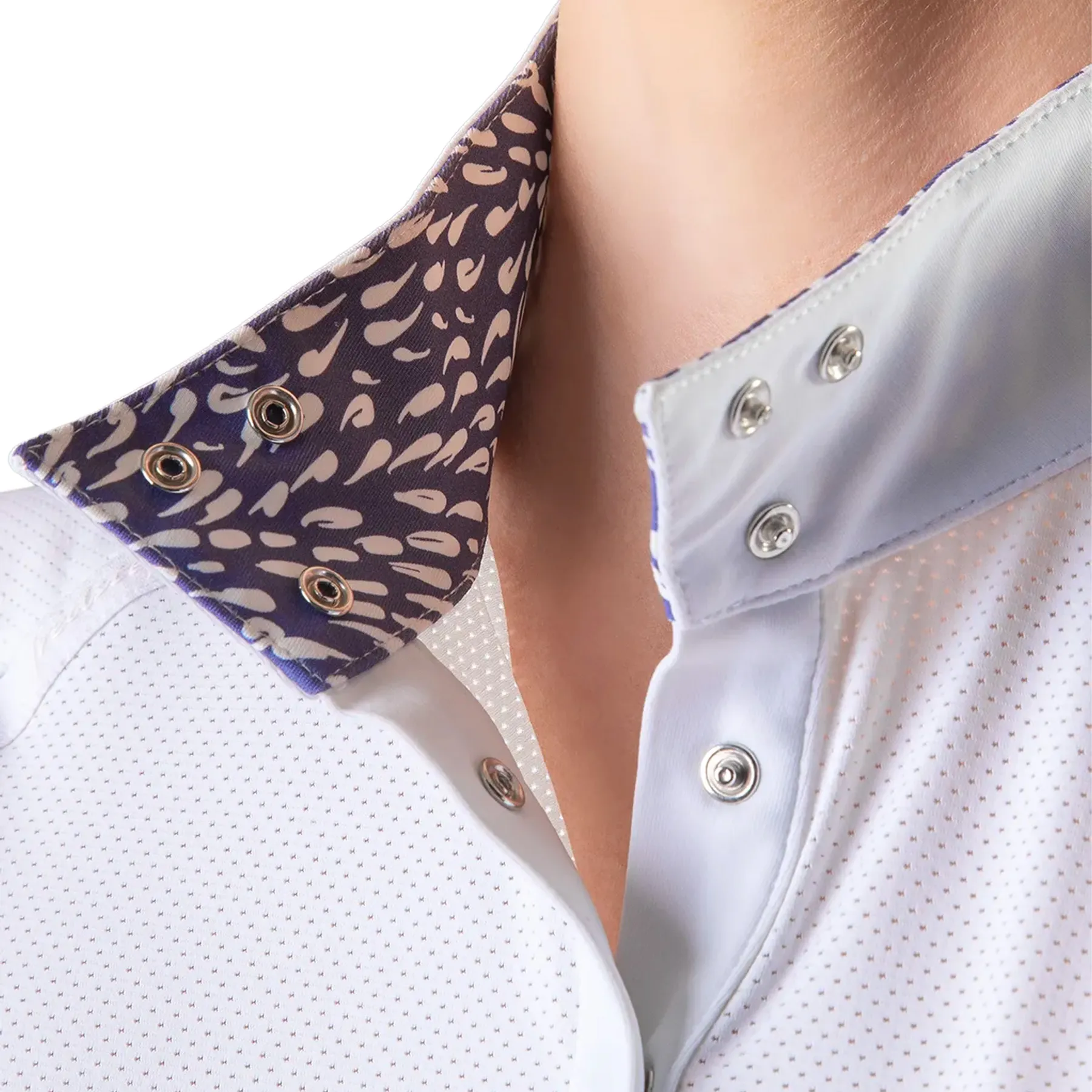 • Traditional collar with modern interior print detail