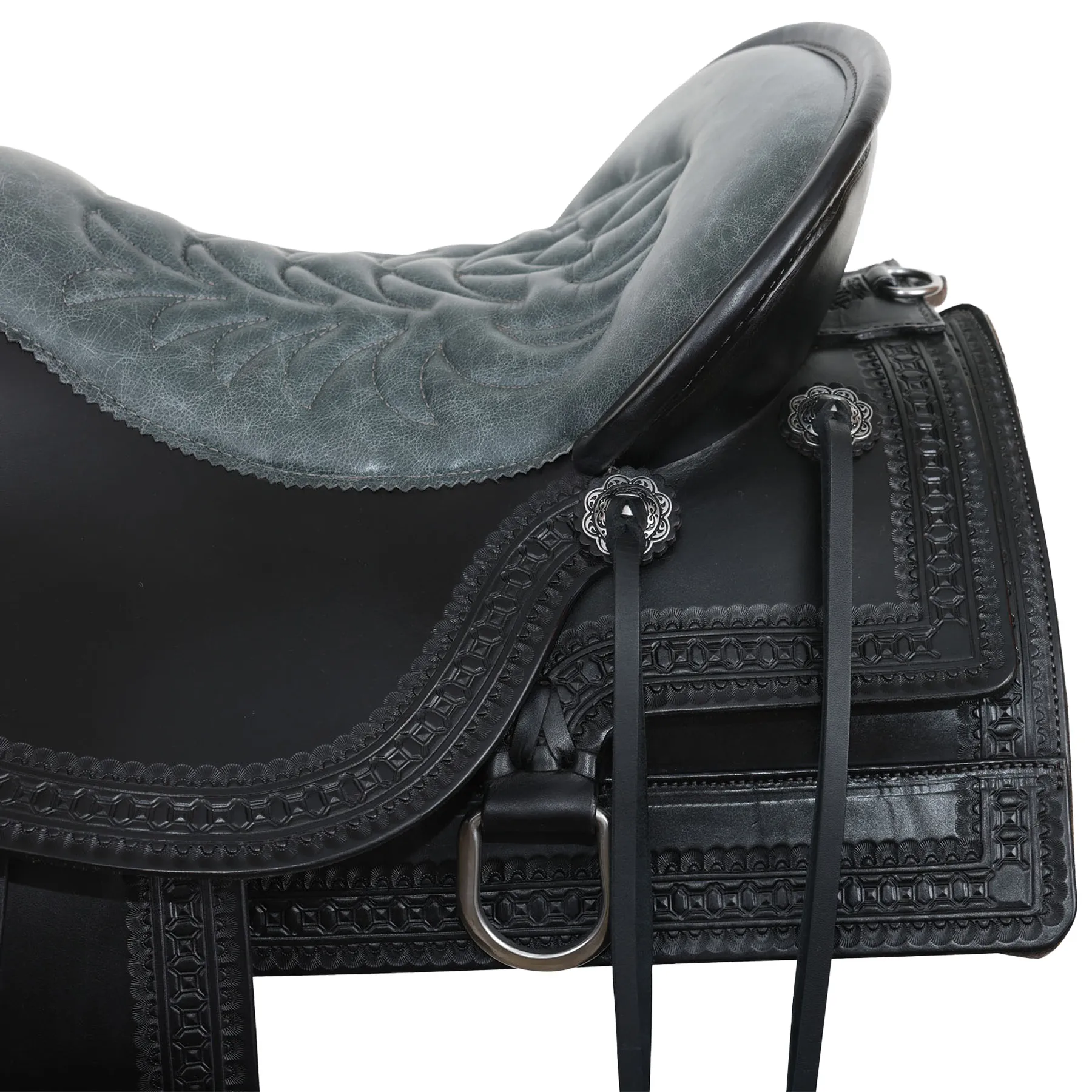 Channel the spirit of the frontier with the Tucker Heritage Old West Trail Saddle, a true nod to the iconic cowboy era. This saddle blends timeless western charm with trail-ready comfort. With a high 5" cantle for excellent back support and double square skirts for authentic flair, it's built for riders who appreciate traditional style and function. The dropped in-skirt rigging keeps your seat interference-free, while rich leather and Jeremiah Watt hardware complete the vintage-inspired look.