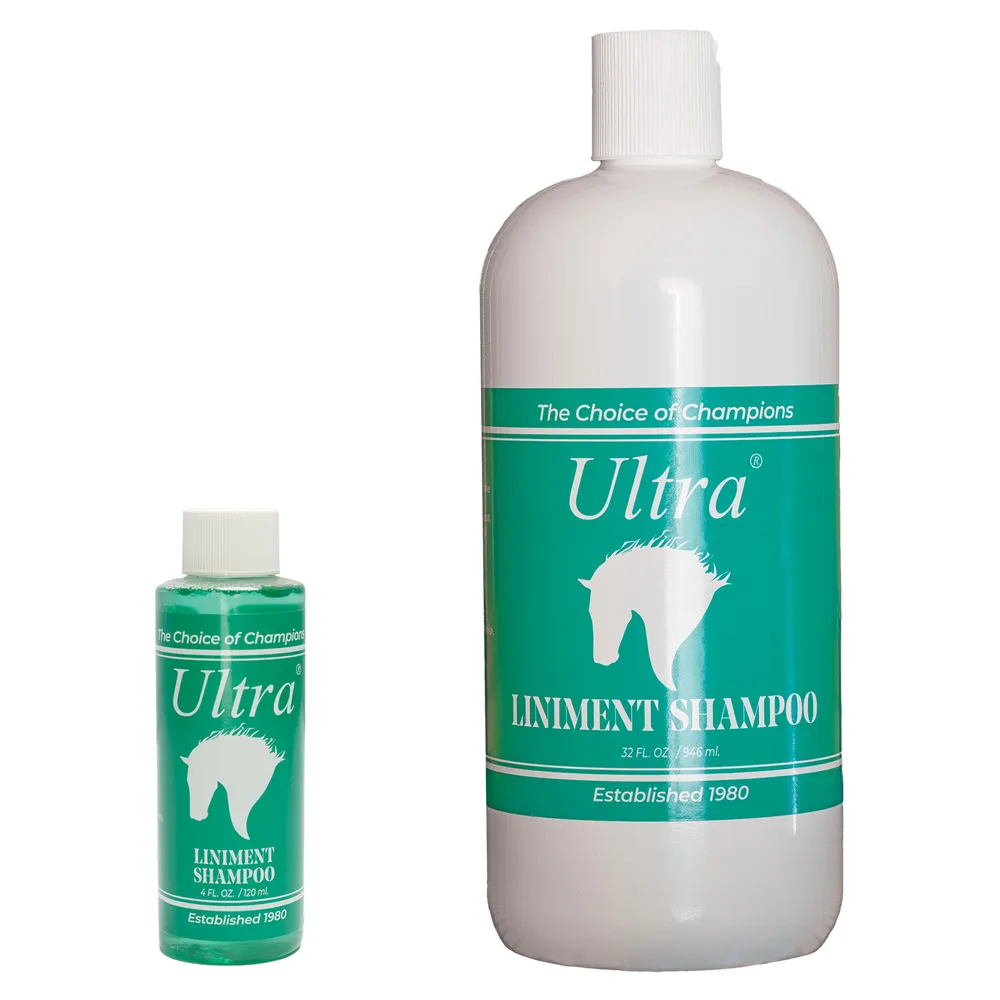 Next time you give your horse a bubble bath, reach for the Ultra® Conditioning Liniment Shampoo with added muscle-relaxing properties. The powerful deep cleaning agents remove the toughest stains without depleting the coat of natural oils. Plus, the low-sudsing formula rinses out easily to eliminate residue buildup. Your horse will be cleaned and conditioned to a lustrous shine, and their muscles will be soothed during bath time. Highly concentrated to last.