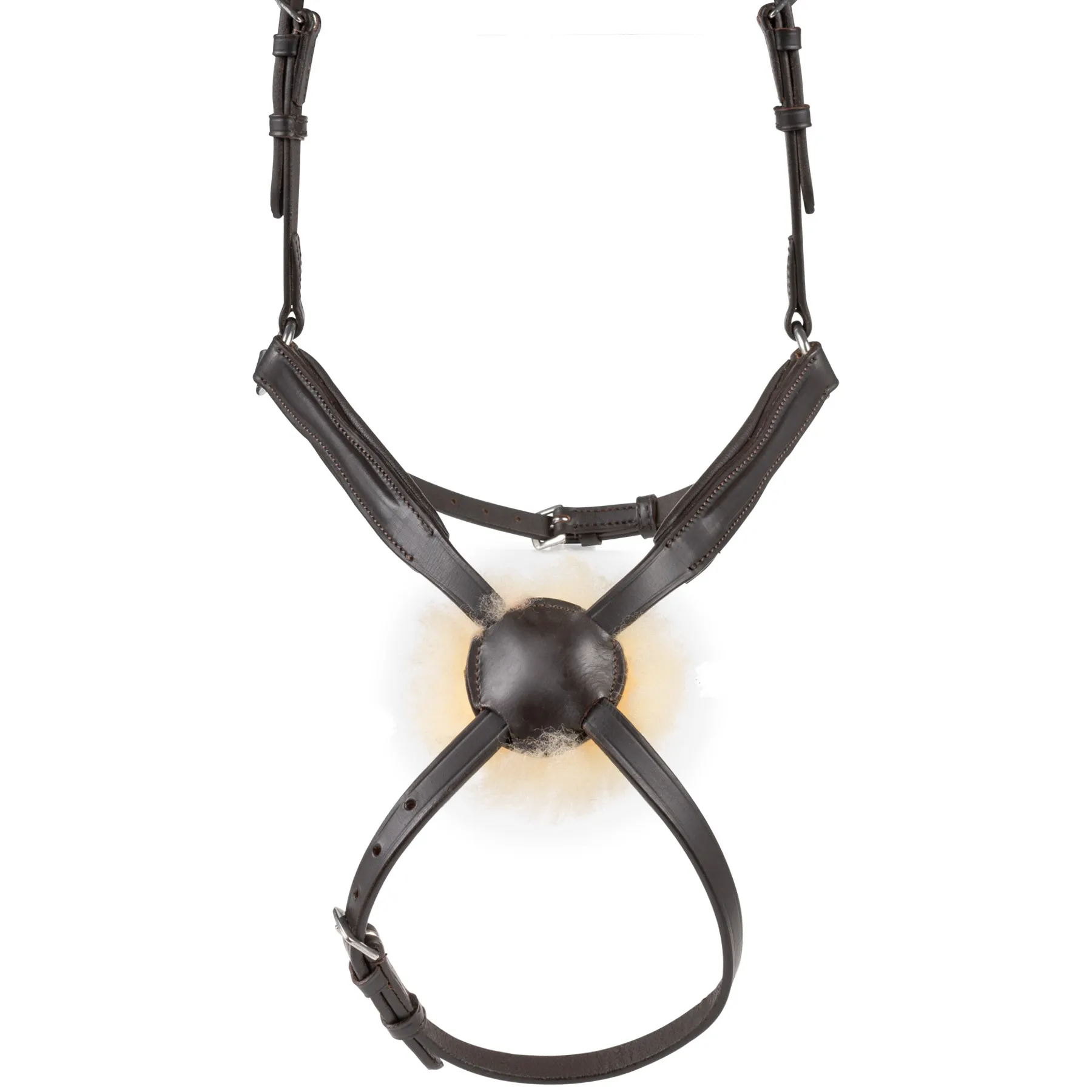 - Crossed (figure 8) noseband with padded rosette for gentle support