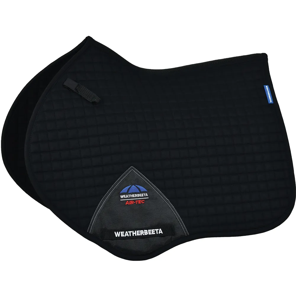 Jump into cool, confident rides with the Weatherbeeta® Prime Air-Tec Jump Shaped Saddle Pad, designed specifically for forward-cut jumping saddles. This performance pad features a breathable cotton upper, wick-easy lining, and the signature Air-Tec mesh spine to keep your horse dry and comfortable during intense sessions. Its smart construction ensures a secure fit and long-lasting durability, making it an essential for both training and show days.
