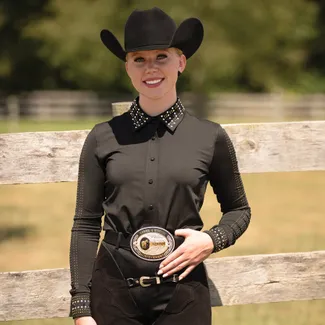 No western pleasure outfit is complete without some sparkle. Shop various designs that offer the right amount of crystals so you can shimmer in the show ring. The tailored cuts and stretchy material will ensure that you look your best, allowing you to keep your focus on riding.